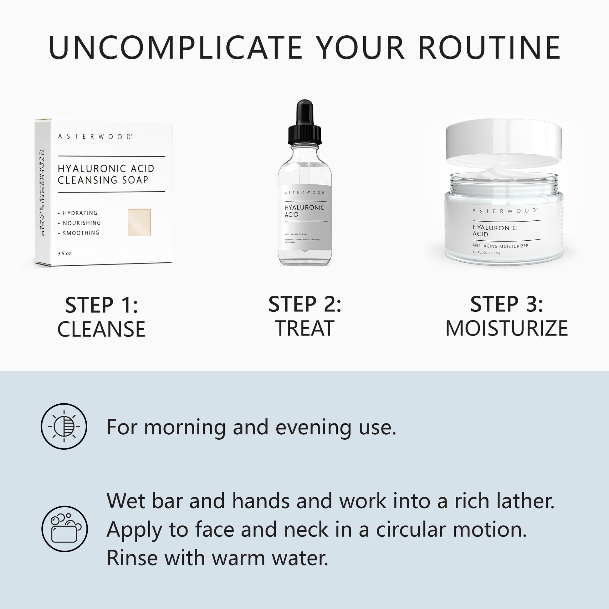 • Effective Routine: For optimal results, follow up with Asterwood's Hyaluronic Acid Serum and Moisturizer after cleansing with the soap bar, creating a comprehensive skincare routine that maximizes hydration and skin health.