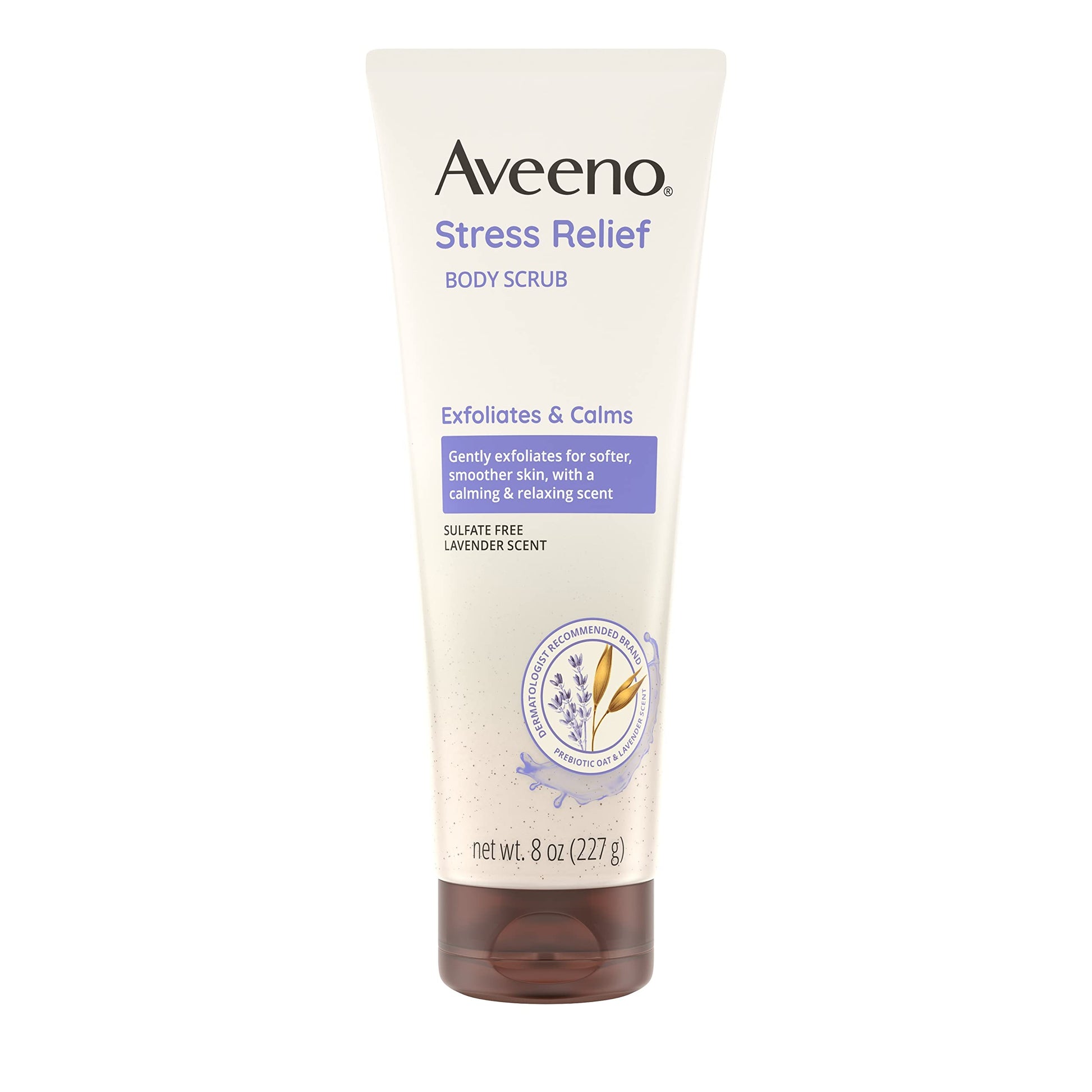 Details: Gently exfoliate as you unwind with Aveeno Stress Relief Body Scrub for women and men. From a dermatologist-recommended brand for over 70 years, this body scrub effectively removes dead surface layers, revealing smoother, healthier-looking skin in just one week. Infused with a calming lavender scent, this calming scrub features prebiotic oat, gently exfoliates and renews your skin. The stress relief body scrub is free from soap, sulfates, parabens, and dyes, for a gentle scrub/exfoliation. For optimal use, squeeze the body scrub onto a wet washcloth or your hands, work it into a rich, creamy lather, and rinse thoroughly. For best results, use 3-4 times a week for smoother skin