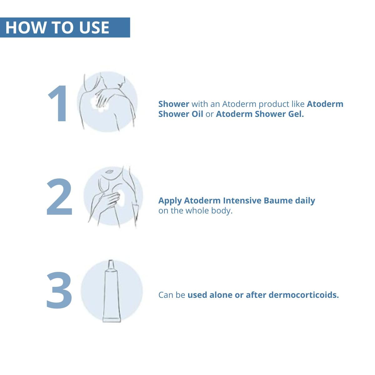HOW TO USE: Apply Atoderm Intensive Balm on dry skin after the shower, gently massage until absorbed - use once or twice a day