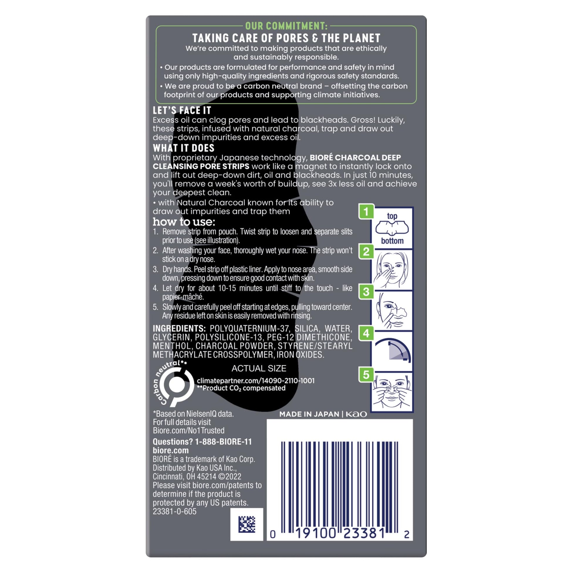 Biore Charcoal Deep Cleansing Pore Strips, Nose Strips for Blackhead Removal on Oily Skin, Features C-Bond Technology with Instant Pore Unclogging, 18 Count