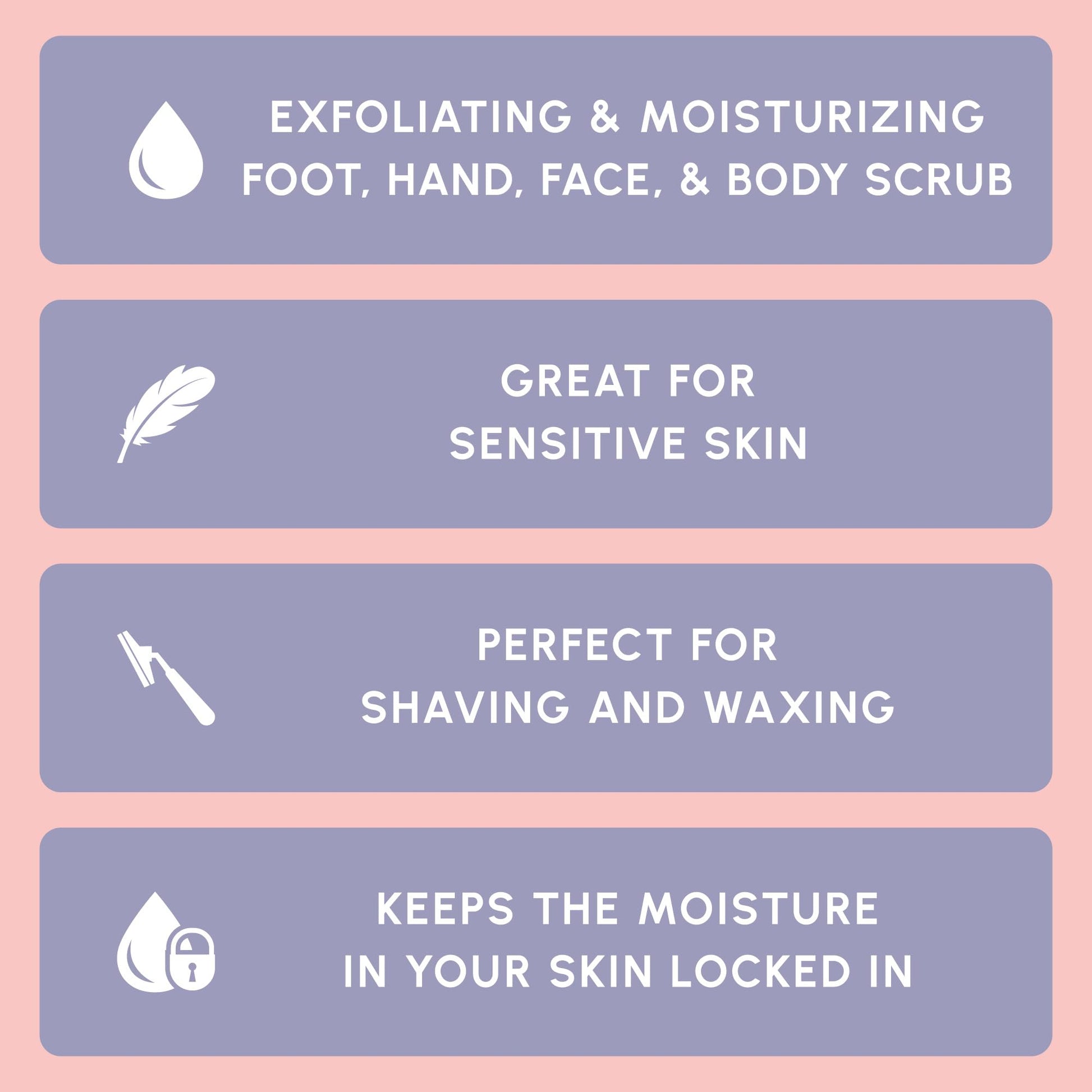GREAT FOR SENSITIVE SKIN: While salt scrubs may be too harsh for sensitive skin, this Brown Sugar Scrub is a great facial scrub exfoliator and for sensitive skin. It is softer than regular sugar scrubs, while remaining strong enough to scrub away dead skin cells and make way for the healthier, glowing clear skin. Use our Brown Sugar Facial Scrub, Body Scrub, Foot, and Hand Scrub for moisturized smooth skin.