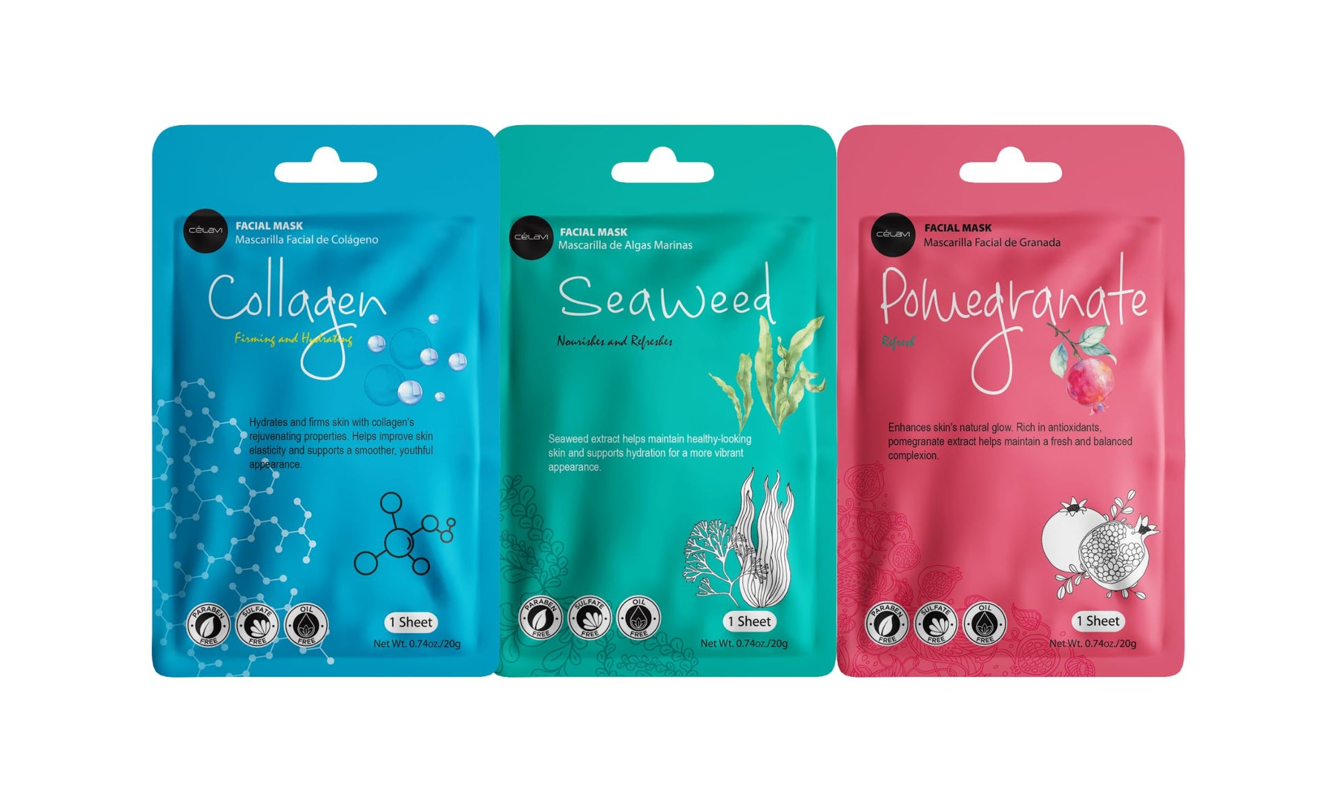 Celavi Essence Facial Sheet Face Mask Variety Set Classic Authentic Korean Moisturizing Skincare (12-Packs)