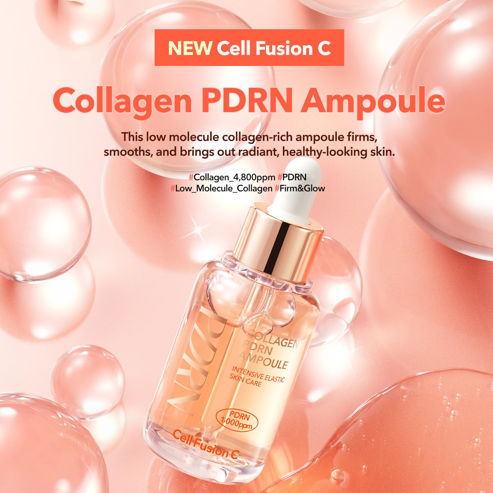 Cell Fusion C Collagen PDRN Ampoule targets dull skin and boosts radiance for glowing skin. With 4,800ppm low-molecule collagen and 1,000ppm PDRN, it boosts elasticity and restores a healthy glow—without stickiness or residue.