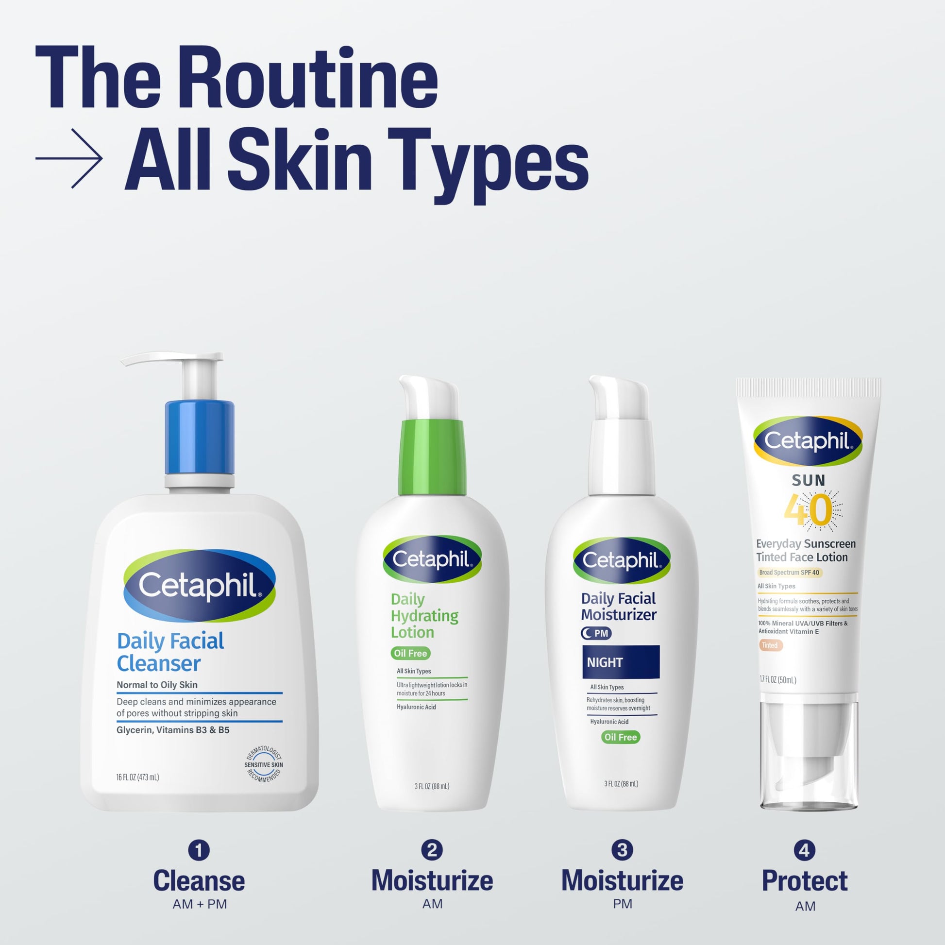 Details: CETAPHIL Everyday Sunscreen Tinted Face Lotion SPF 40 is a lightweight, 100% mineral UVA/UVB active sunscreen for daily use on even the most sensitive skin. The broad spectrum SPF 40 formula creates a physical shield to block harmful UVA and UVB rays to help prevent sunburn and decrease the risk of skin cancer and early signs of aging due to sun exposure. This tinted formula blends seamlessly with a variety of skin tones and immediately neutralizes the look of redness to visibly even skin tone. Formulated with Vitamin E to help defend skin from surface free radicals, Allantoin to help soothe skin, and Licorice Root to help reduce visible redness. CETAPHIL Everyday Sunscreen Tinted Face Lotion SPF 40 is hypoallergenic, fragrance free, paraben free, oil free and defends against 5 signs of skin sensitivity including dryness, irritation, roughness, tightness and a weakened skin barrier.