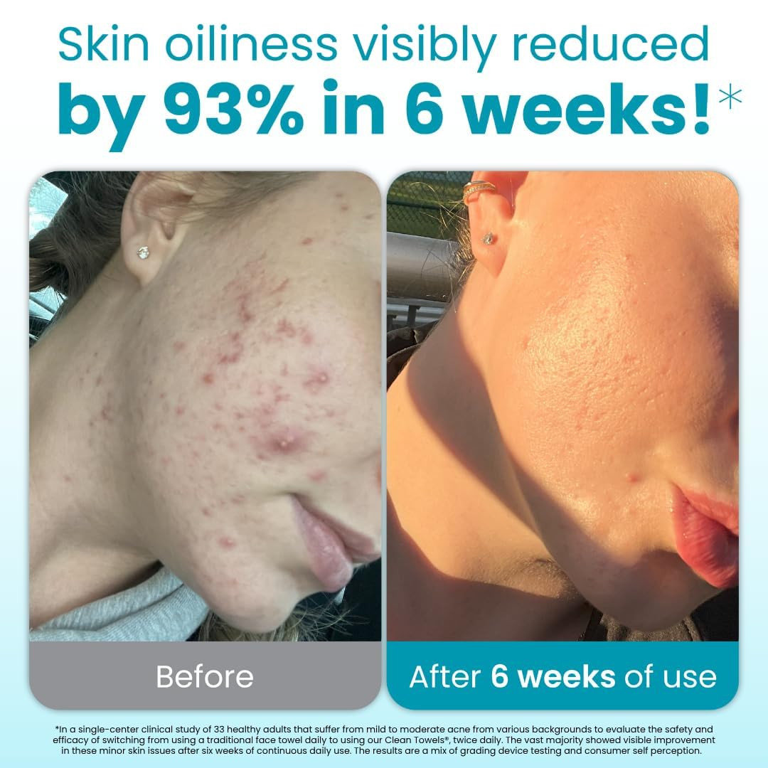 The face towel for blemish-prone skin - Dermatologist-approved and clinically shown to help with excess oil and visible redness in 3 weeks or less