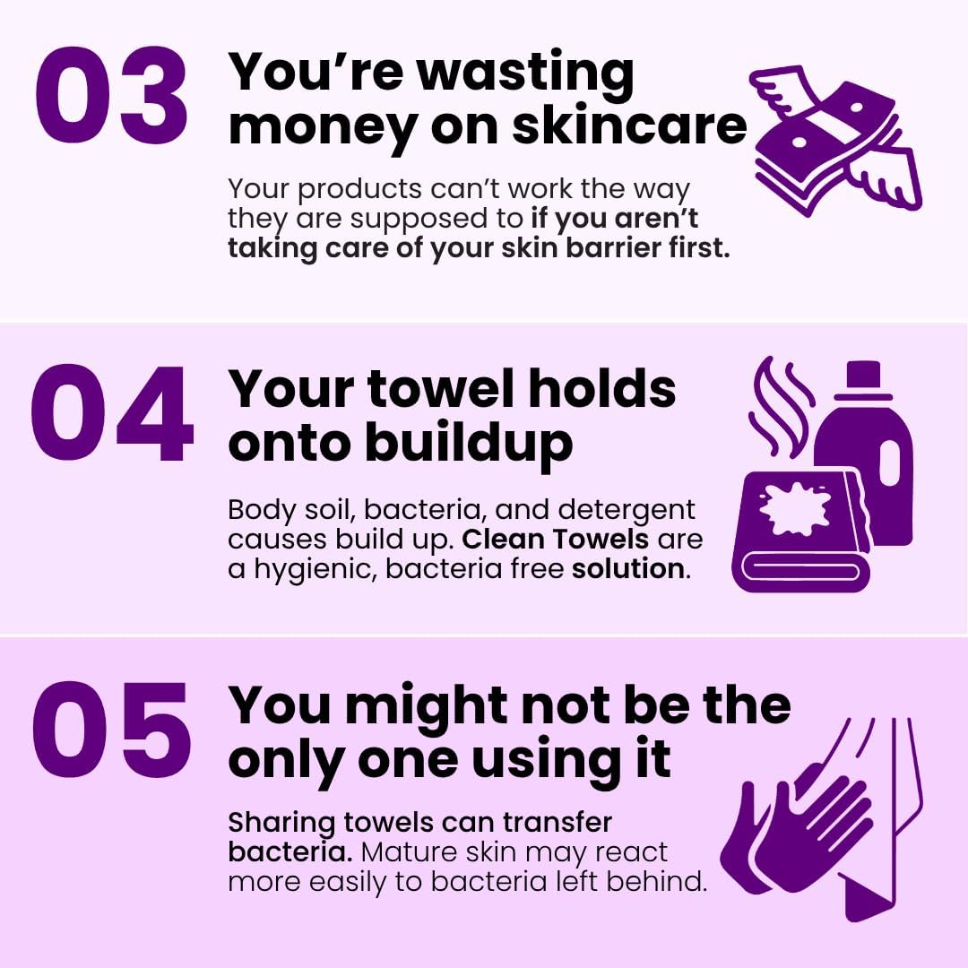 • Glycerin-infused Clean Towels . Dermatologist tested and approved.