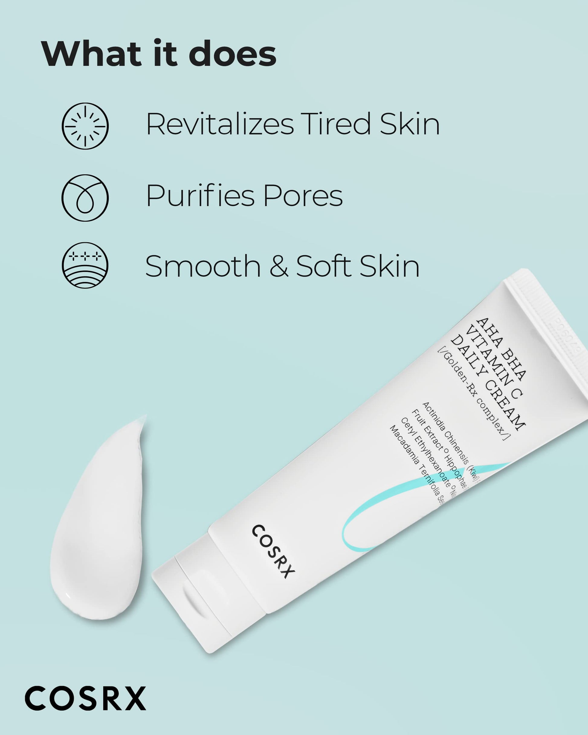 COSRX AHA BHA VITAMIN C Daily Cream 1.69 fl. oz 50 ml, Face Cream, Anti Aging, Plumping Skin, Natural, Fruit, Korean Skin Care