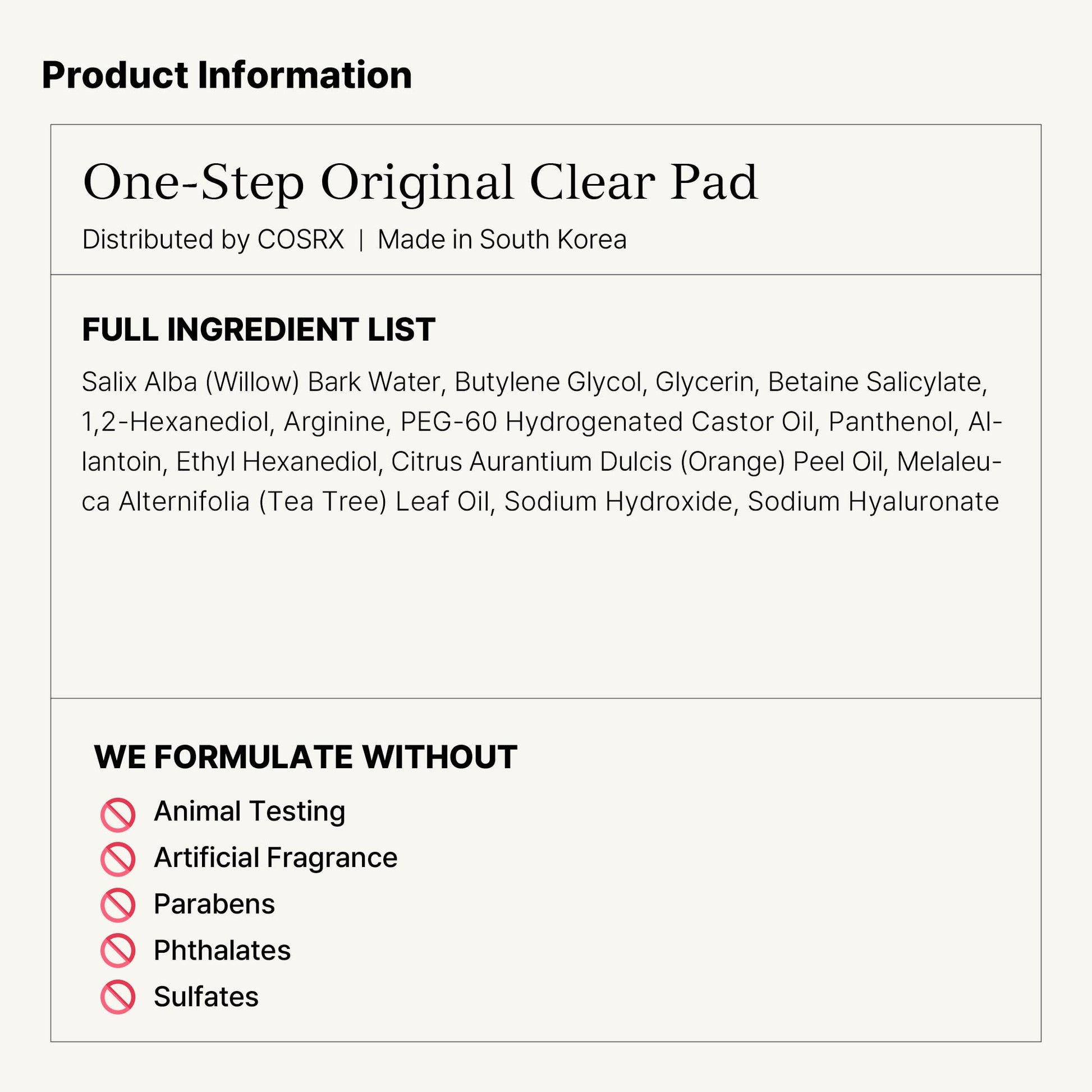 COSRX Standards: COSRX Standards: All COSRX products are formulated with skin-friendly ingredients that alleviate irritated skin. Hypoallergenic, Dermatologist tested, Animal Testing-FREE, Parabens-FREE, Sulfates-FREE, Phthalates-FREE