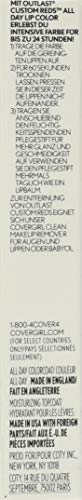 Details: COVERGIRL Outlast All-Day Lip Color Custom Reds, Your Classic Red is perfect for any occasion. Want to get a dazzling, all day lip color? Look no further! The long lasting moisturizing lipstick will keep your lips looking supple and vibrant. This is kiss-proof, smudge-proof, and food-proof so you can go anywhere without your lip color fading! The topcoat lip gloss doesn't only lock in the color but also provides instant moisture for soft shiny lips.