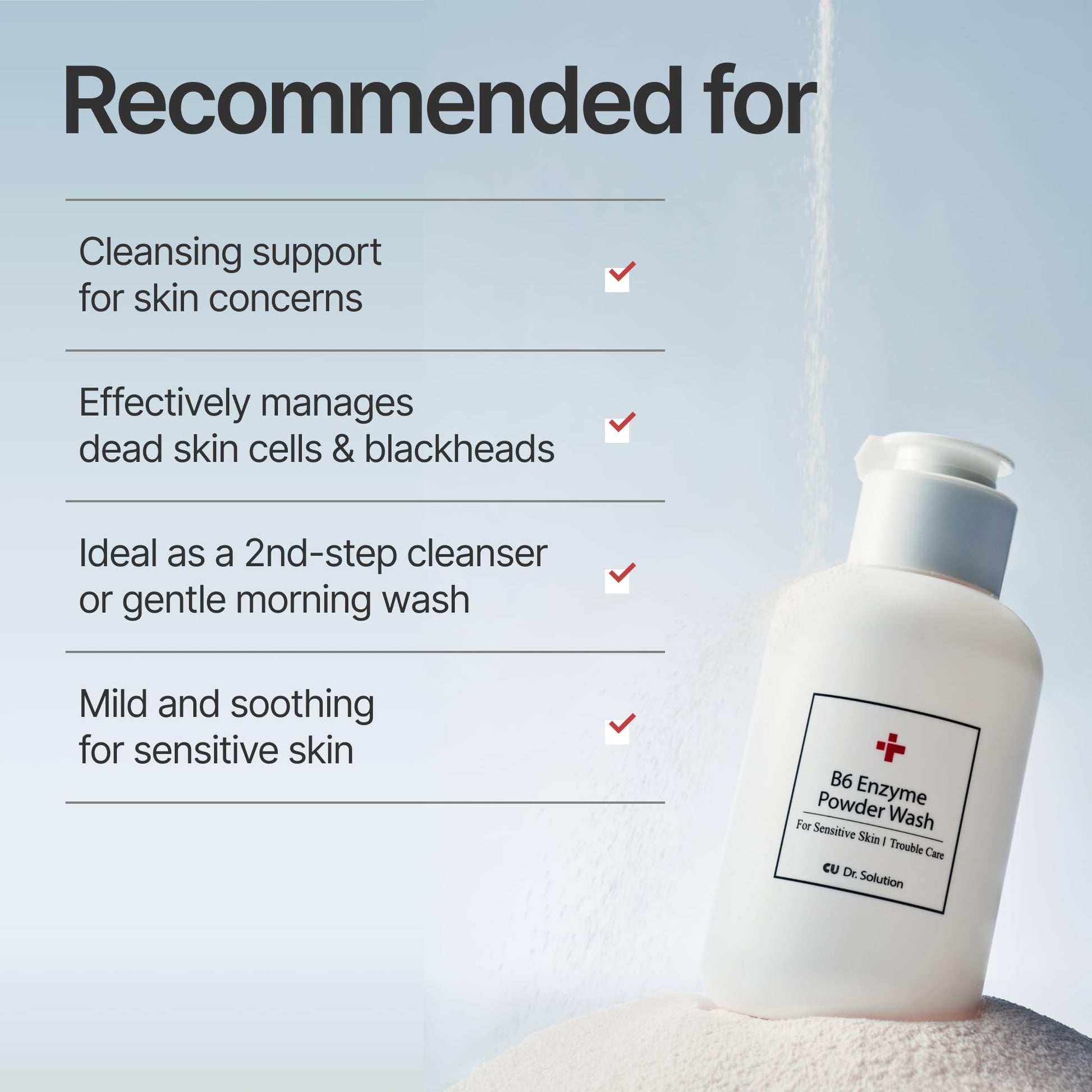 CU DR. SOLUTION B6 Enzyme Powder Face Cleanser, Korean Skin Care Exfoliating Face Wash with PHA and Papain Enzyme, Face Exfoliator with Calamine and Vitamin B6, Gentle Cleanser, 55g (1.94 Oz)