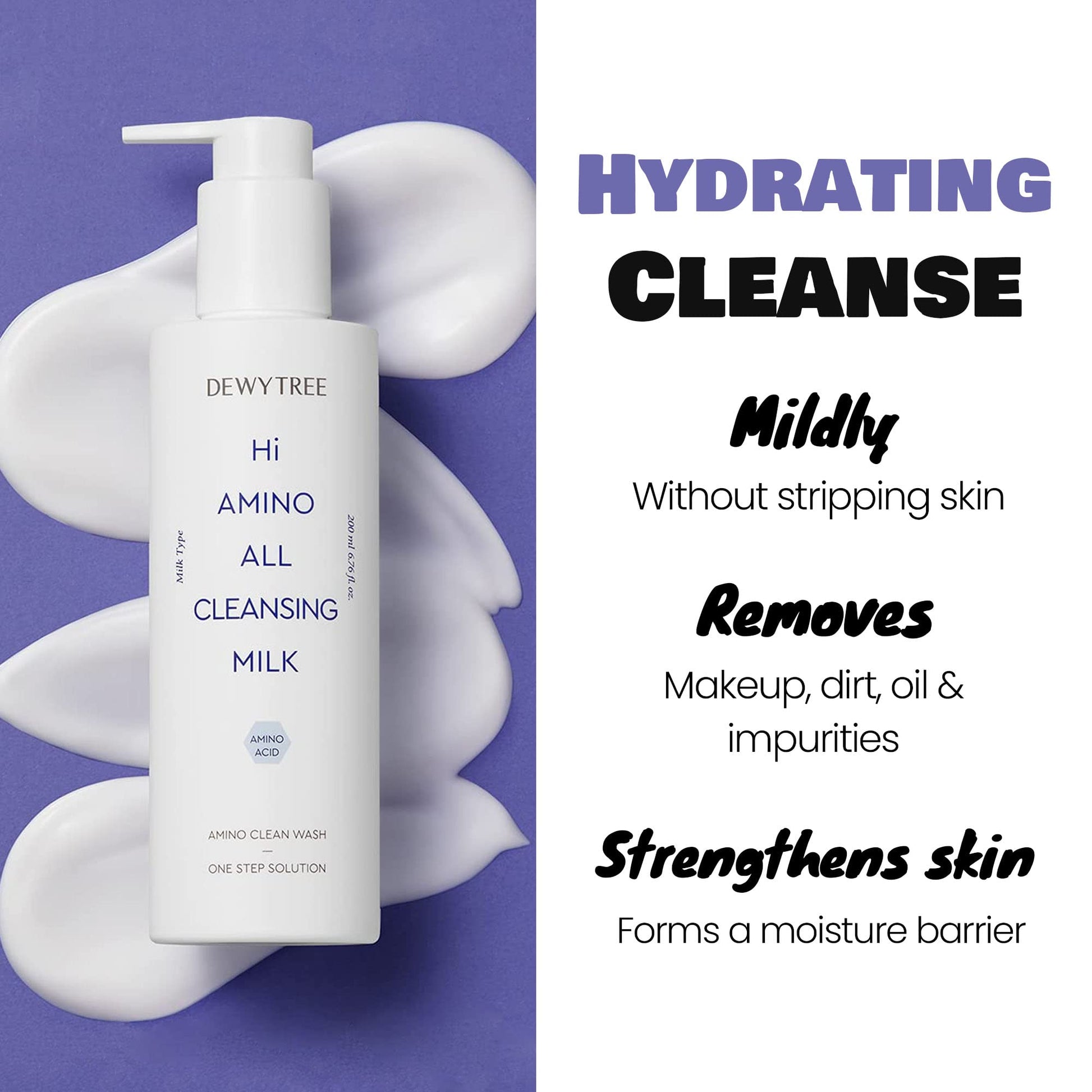 DEWYTREE Hi Amino All Cleansing Milk - Hydrating Facial Cleanser for Sensitive Skin | Amino Acid Face Lotion Oil Cleanser Korean Exfoliating Face Wash | Face Cleanser for Women & Men (6.76fl oz)