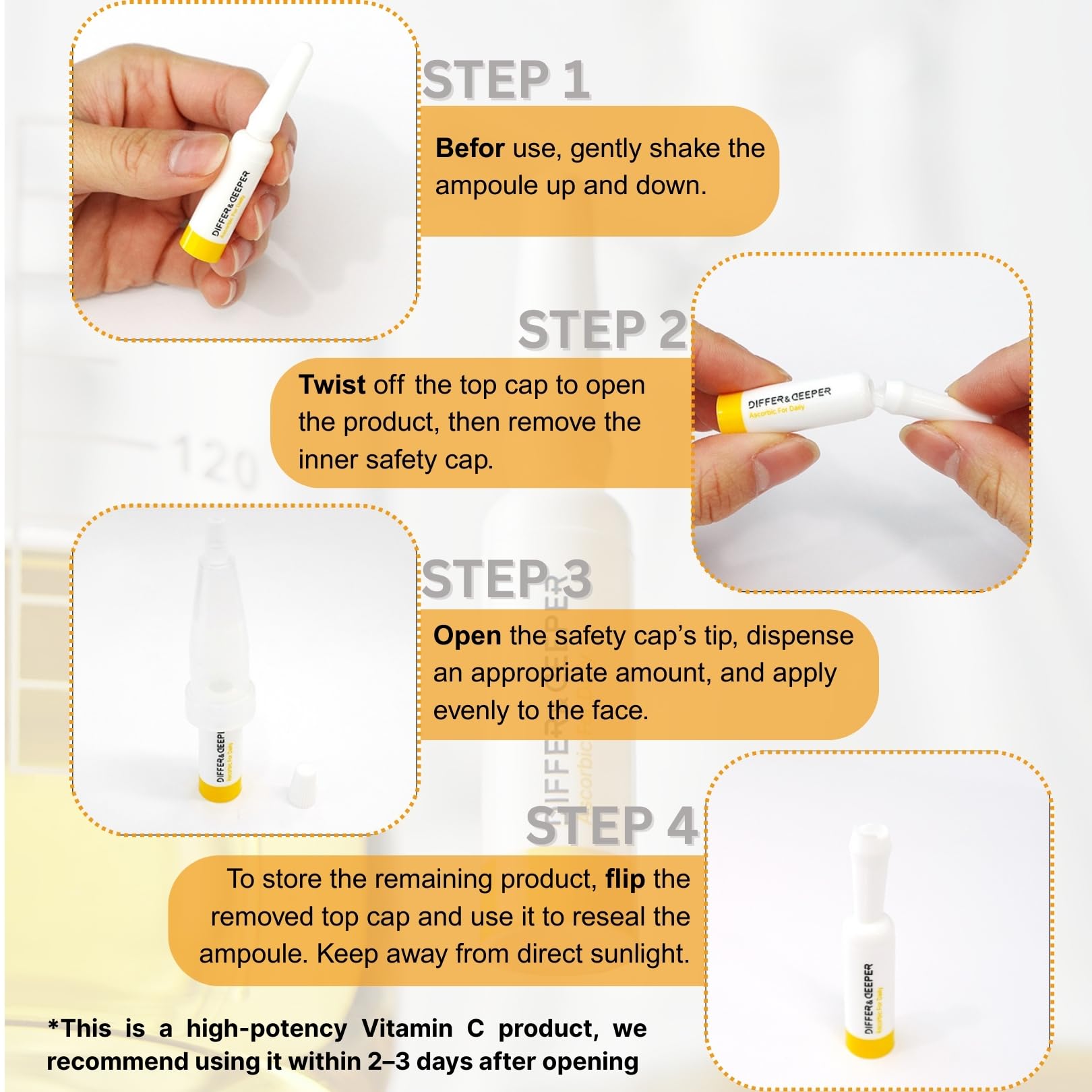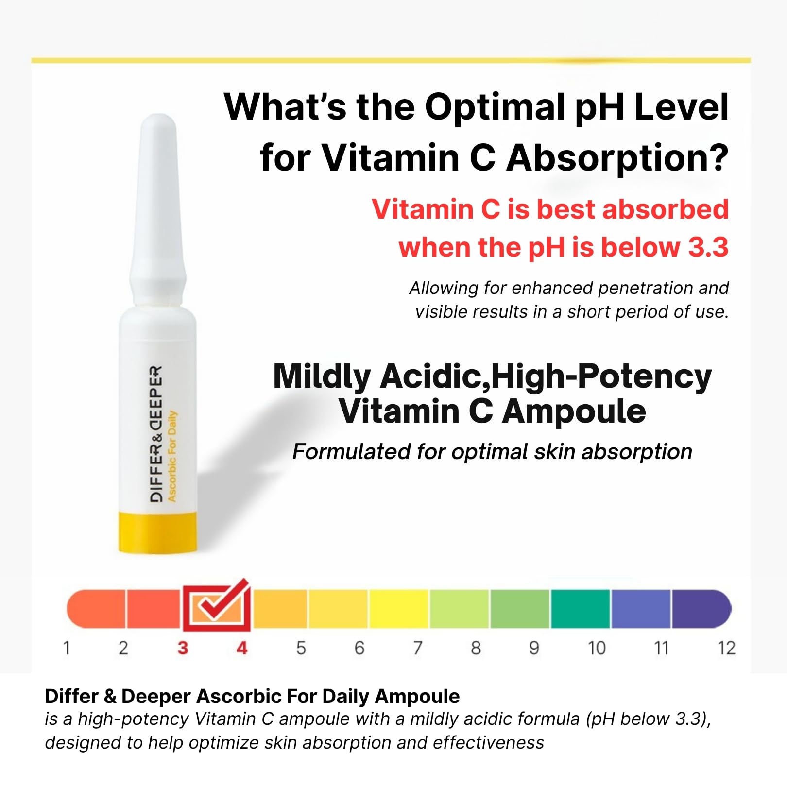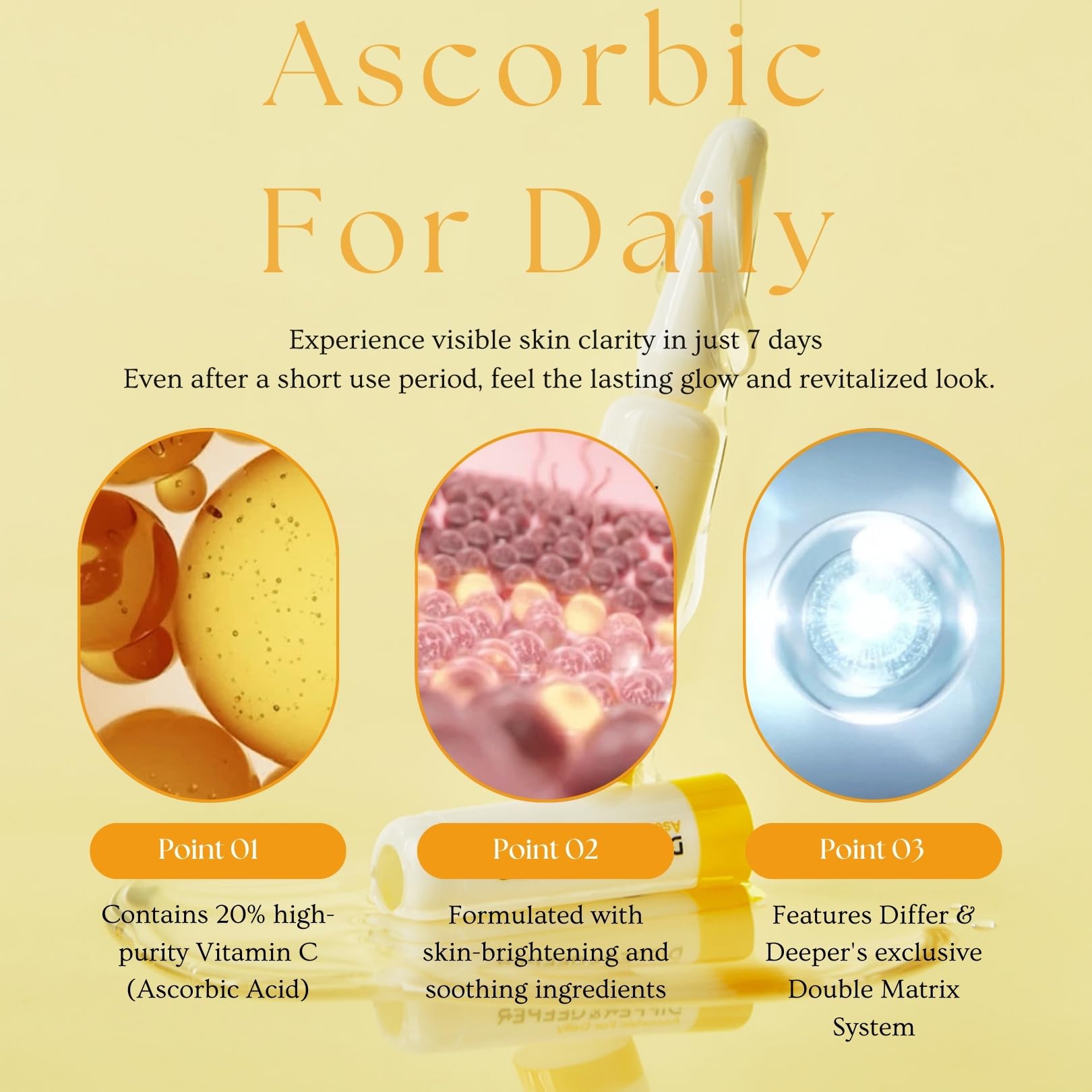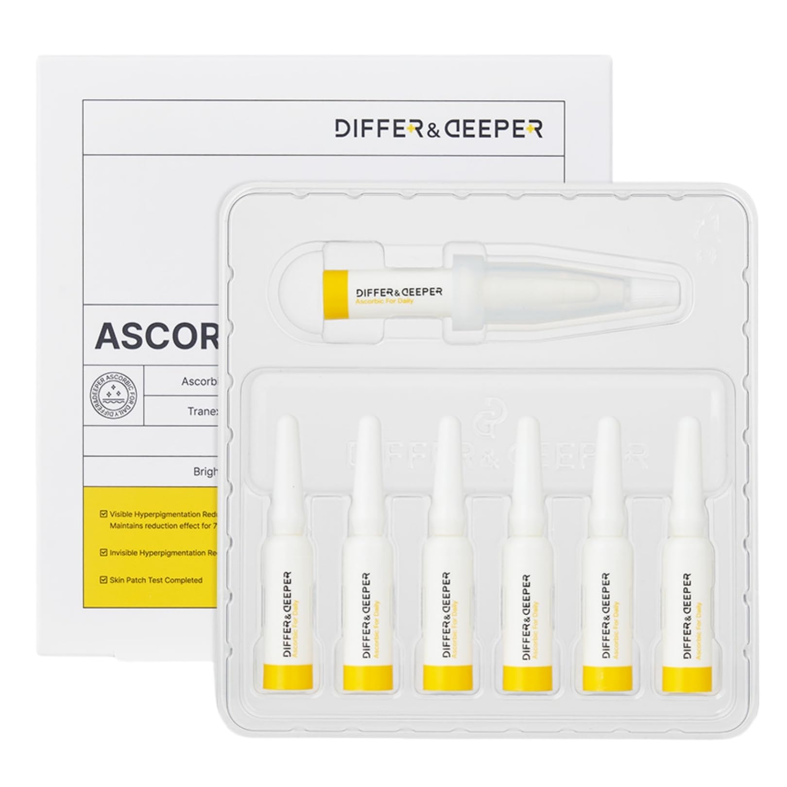 Differ & Deeper Ascorbic For Daily Ampoule – 20% Pure Vitamin C Serum Lightweight Formula | K-Beauty Skincare Ampoules (7 x 2ml)