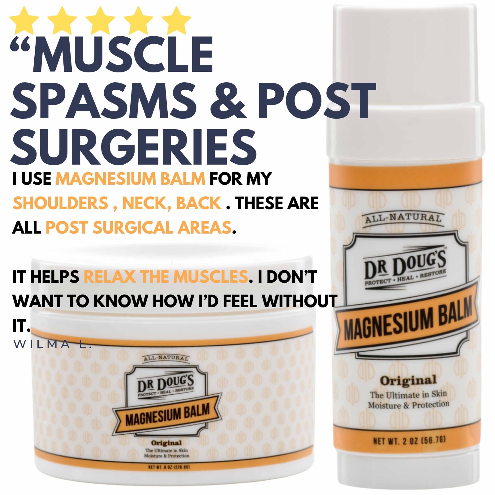 • Nighttime Muscle & Nerve Relief – Dr. Doug’s Magnesium Balm offers relief for everyday muscle discomfort and nerve issues, perfect for use after exercise or for nighttime relaxation.