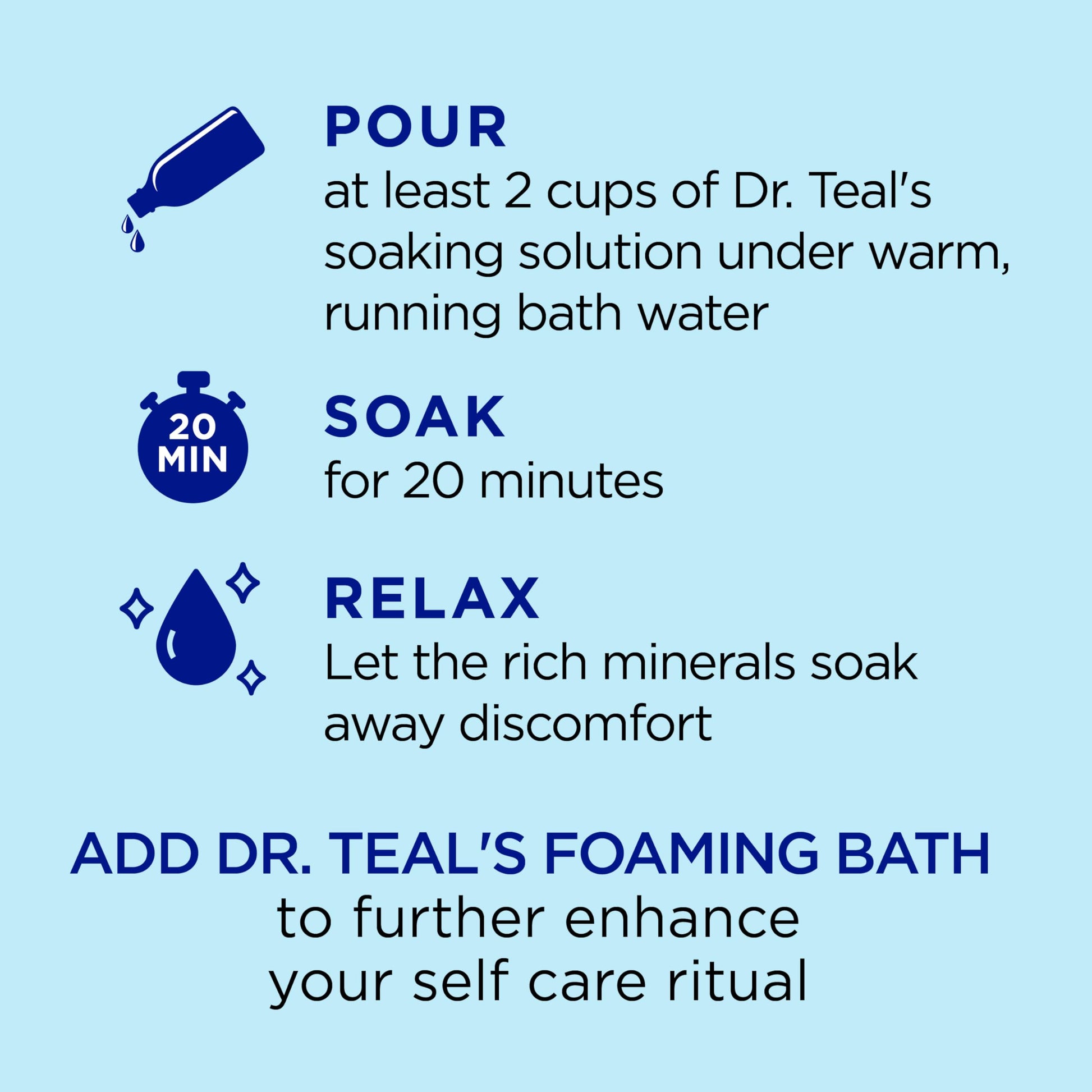 EXFOLIATE: To exfoliate, mix a handful with your favorite Dr Teal’s body wash and gently massage into the skin