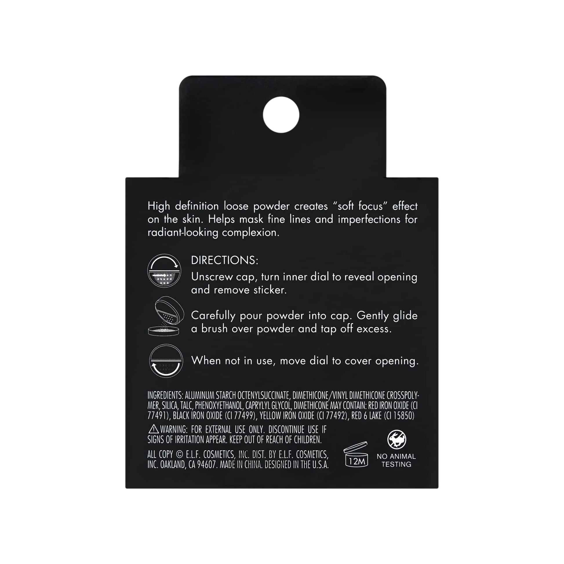 Details: "The High Definition Powder is your secret weapon to a flawless face. This versatile loose powder can be worn to set your makeup or worn alone to reduce shine on days when you feel like going au natural – either way you’ll be putting your best face forward. e.l.f. makes the best of beauty accessible to every eye, lip, and face. Your originality is infinite, and we are inspired by what makes you unique. From the early explorer to the trend-obsessed beauty junkie—glam or bare faced, minimalist, maximalist and every look in between—we are for every eye, lip, and face. Proud to be 100% vegan and cruelty-free, worldwide.