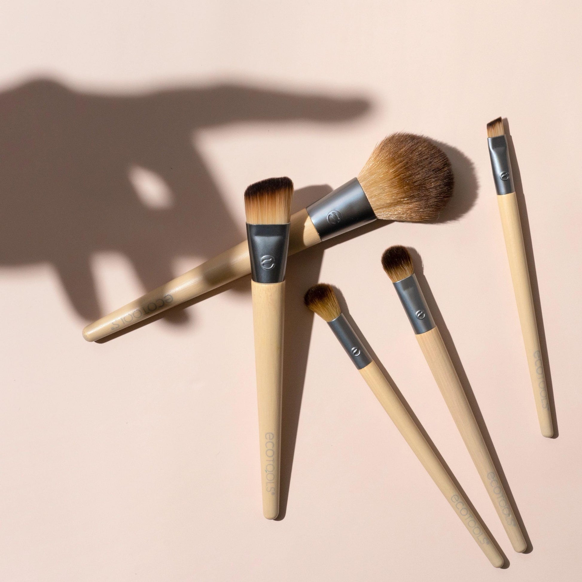 EcoTools makeup brushes feature 100% renewable bamboo handles, aluminum ferrules, and synthetic hair- Always 100% vegan & PETA cruelty-free. Packaging is designed with eco-friendly, FSC-certified compostable paper*