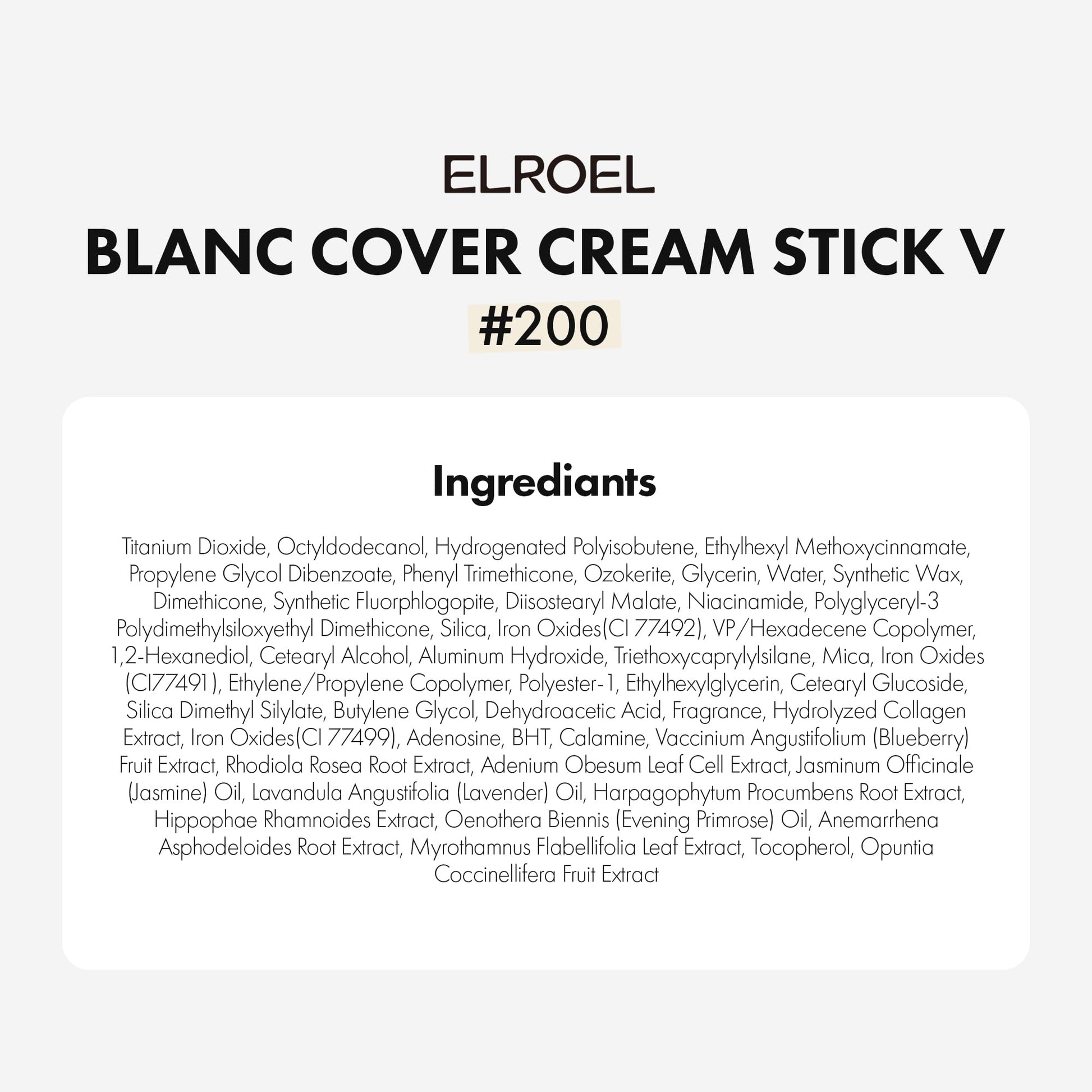 ELROEL Blanc Cover Cream Stick V White - Korean Color-Changing Foundation Stick with Volufiline - Medium to Full Coverage Dewy Finish Base Makeup - Dual-Ended with Detachable Brush (200 Fair)