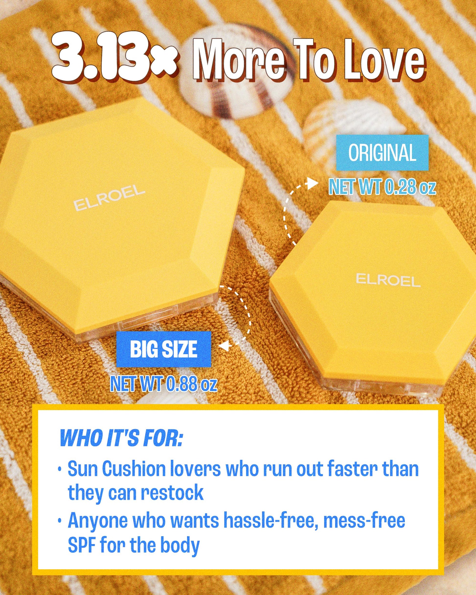 TRAVEL-FRIENDLY SUN CUSHION Our Sun Cushion makes SPF reapplication easy with its compact design—just pat, pat! A few taps, and you're ready to go. Its palm-friendly, spill-proof design is perfect for on-the-go use. The hot and humid weather is already frustrating, don't let some messy, pasty sunblock ruin your day. No white cast, all skin tones welcome!