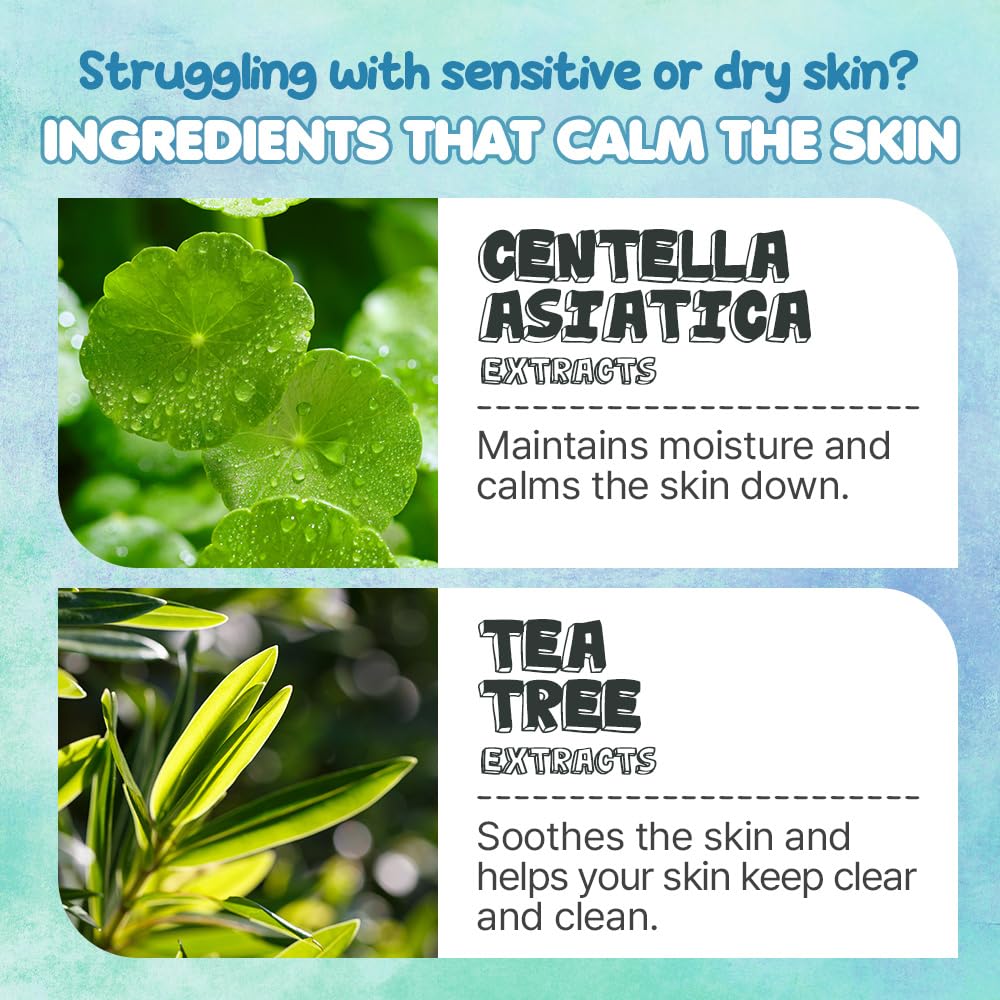 • [CICA AND TEA TREE EXTRACTS] Treats rough and sensitive skin, helping to soothe and strengthen the skin barrier.