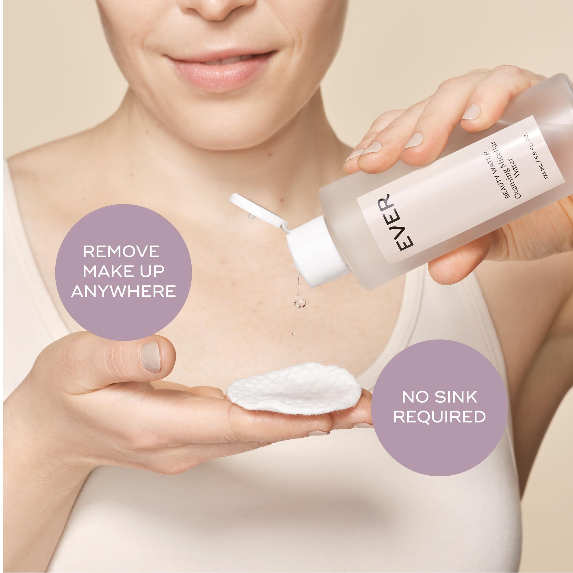 EVER Beauty Water Micellar Cleaning Water & Eye Makeup Remover – Rose Water, Lactic Acid & Pro/Prebiotics Cleanser for Sensitive Skin, Removes Waterproof Makeup, Tones & Hydrates - 5.9 fl oz