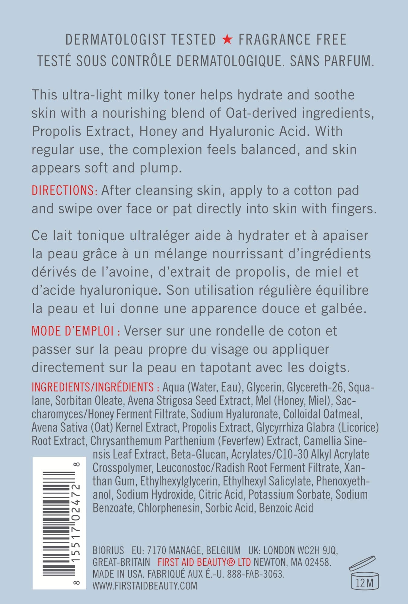 Balanced Hydration: Alcohol-free and oatmeal-powered, use this milky toner after cleansing to help hydrate, relieve and soothe the skin while supporting overall skin health for a balanced, dewy complexion