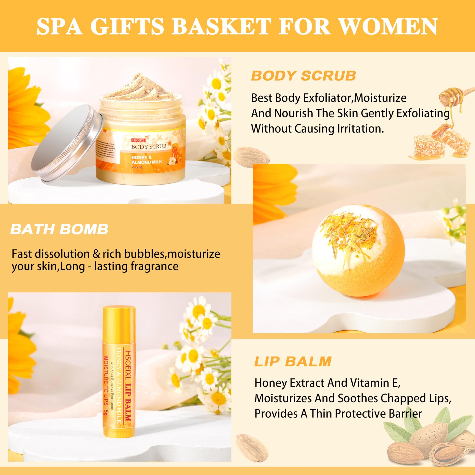 Gifts for Women, Birthday Gifts for Women, 9 Pc Almond Milk & Honey Bath and Body Gifts Set, Self Care Gifts Spa Gifts Basket, Relaxing Bath Sets for Mom, Girlfriend, Sister, Female Friends, Coworker