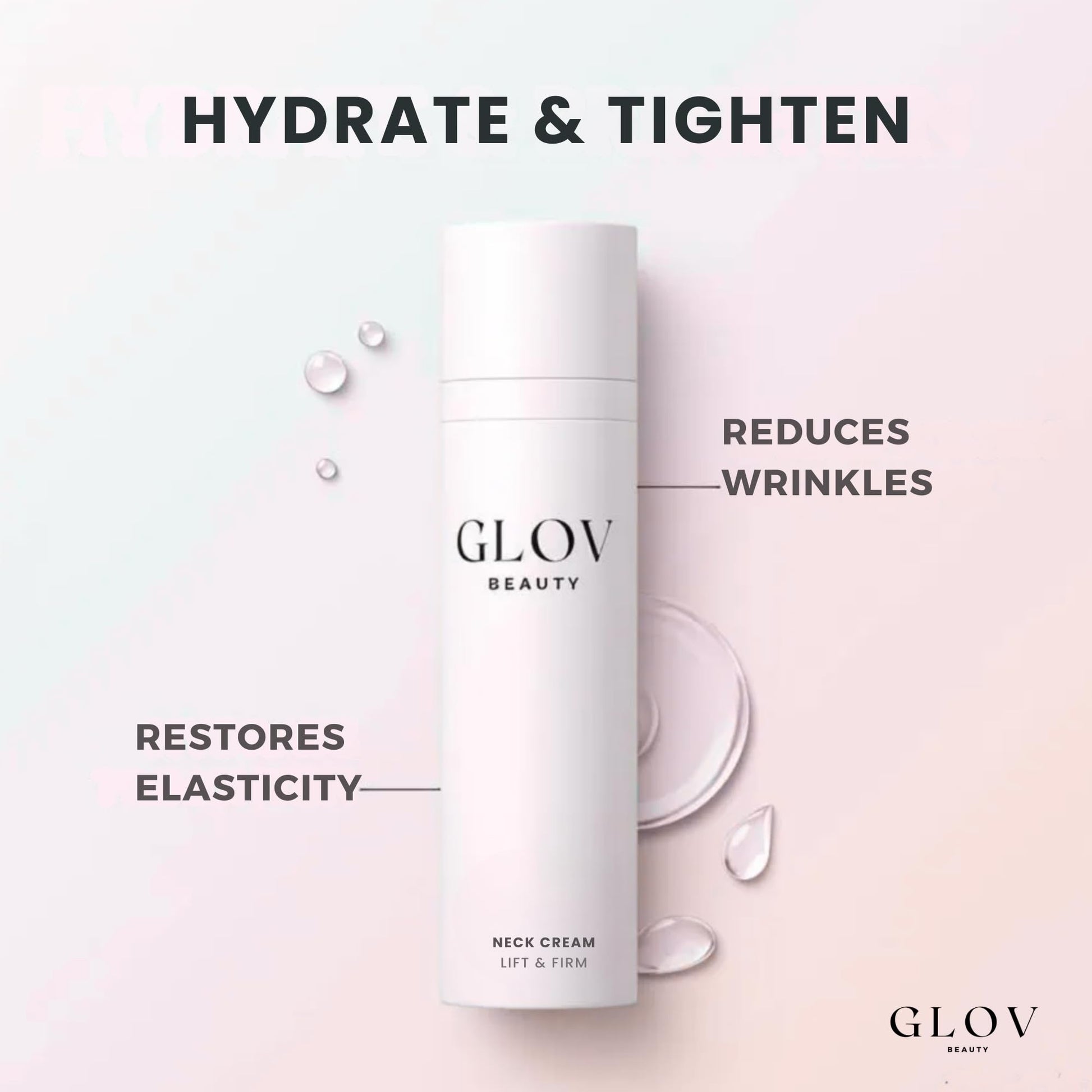 Details: Transform your neck and décolleté with Glov Beauty's advanced firming neck cream, specifically formulated to target sagging skin, wrinkles, and loss of elasticity in these delicate areas. Our luxurious cream combines cutting-edge skincare science with nourishing ingredients for visible lifting and tightening results.