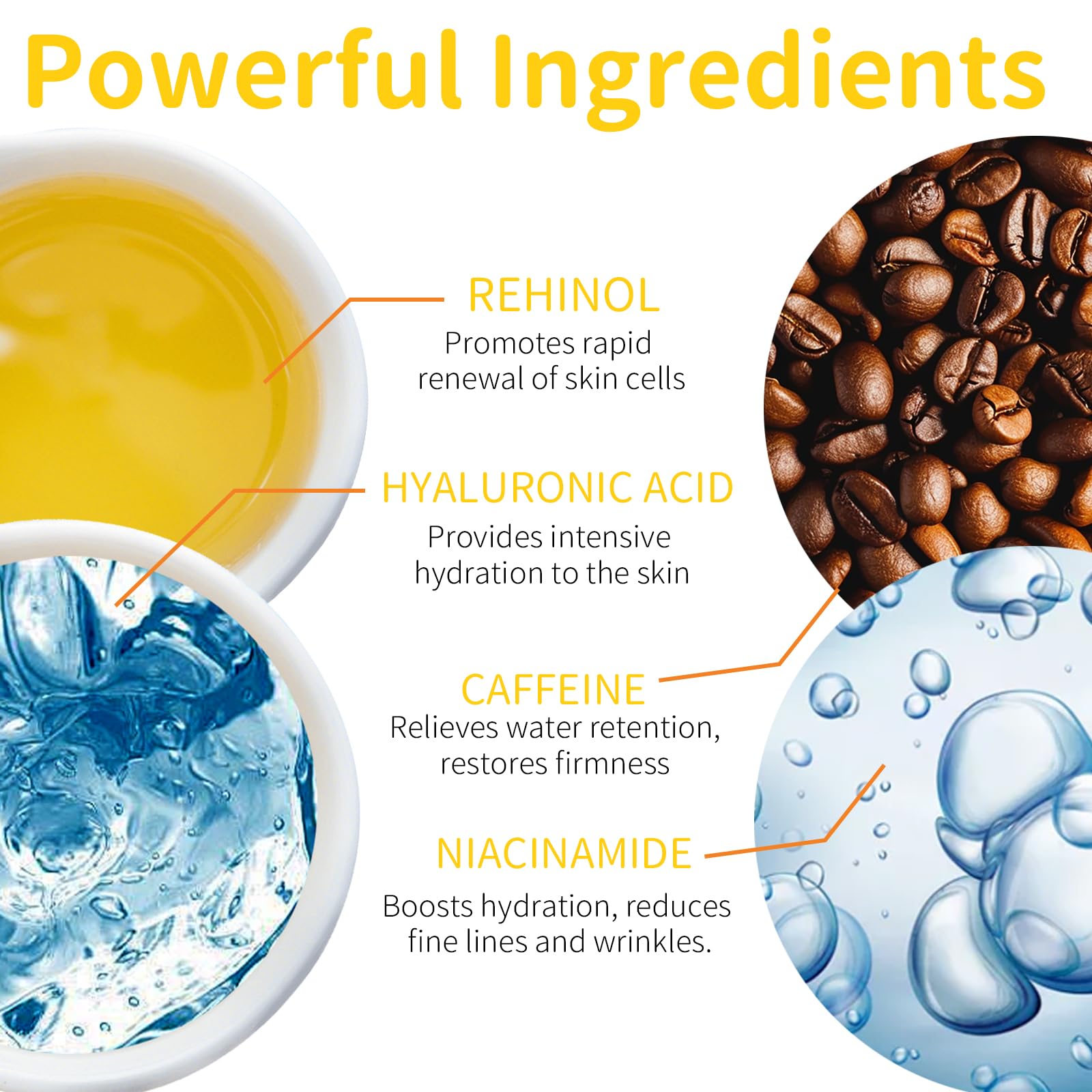 Advanced Anti-Aging with Active Ingredients: Powered by a scientific blend of Retinol to renew skin, Hyaluronic Acid to boost moisture, Caffeine to revitalize, and Niacinamide to even tone and refine texture. Together, they target wrinkles, firm the skin, and restore a radiant, smooth complexion.