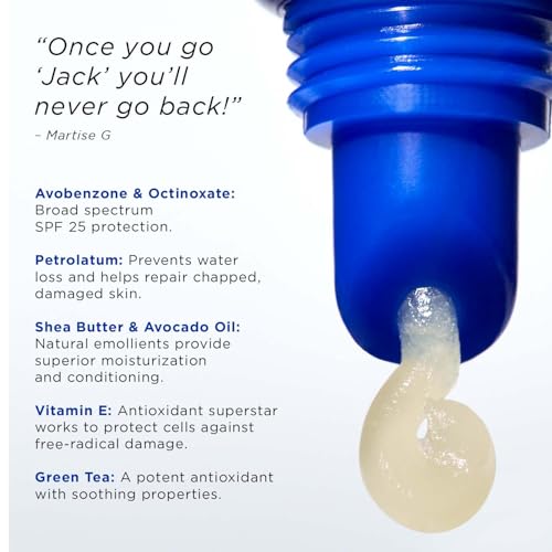 Jack Black Intense Therapy Lip Balm, 0.25-Oz., Pack of 3 – Shea Butter & Vitamin E, SPF 25 Sun Protection, Lip Moisturizer, Hydrating Lip Balm with SPF,