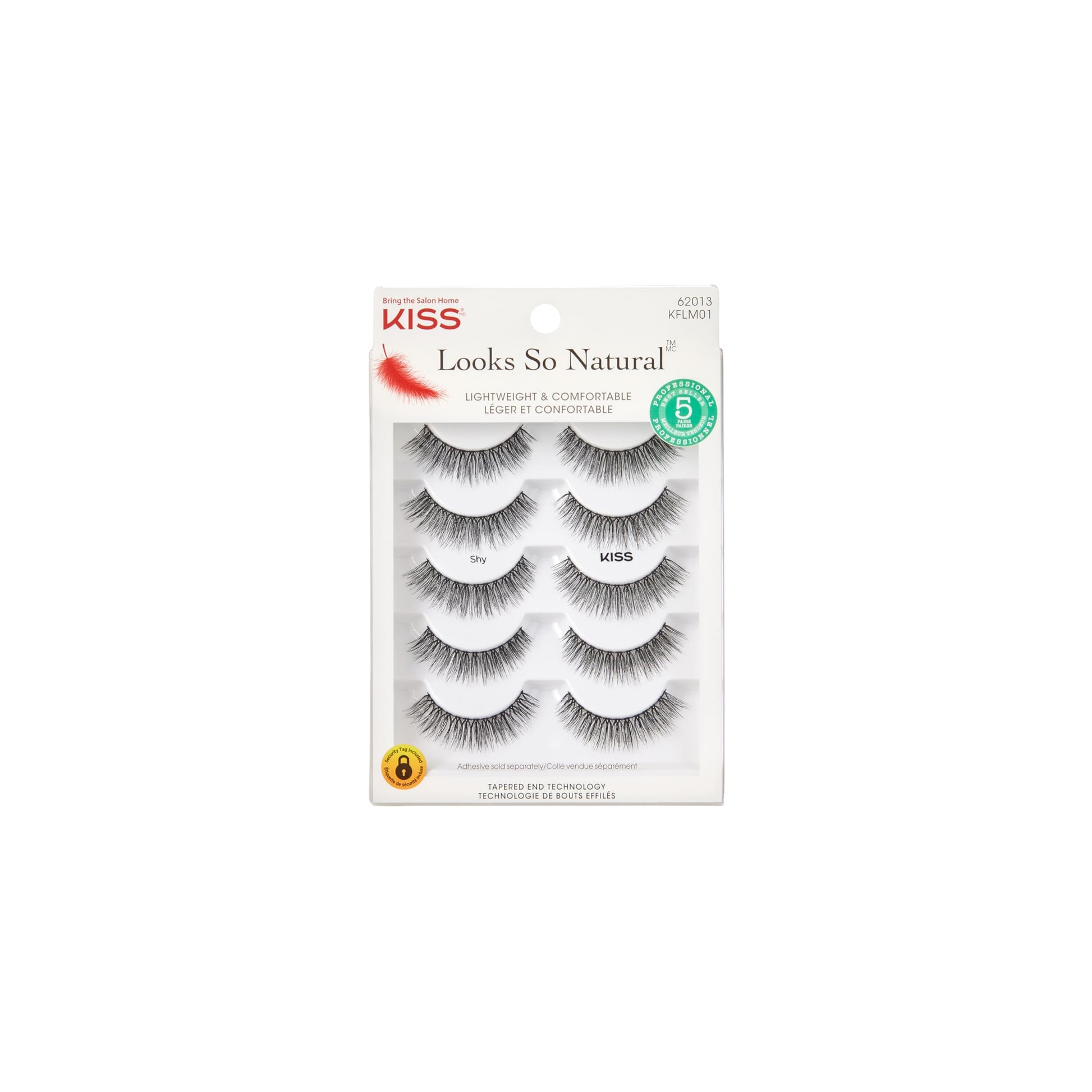 Details: When you need more than just mascara! With revolutionary tapered end technology, now you can get lashes that blend seamlessly with your own lashes. KISS Looks So Natural false lashes are so light and comfortable you'll forget you're wearing them. Featuring finely flared lashes that lengthen as they reach the outer corners of your eyes. They feel like your own, and they're light and soft as a feather. Featuring a full range of styles for that everyday lash look.
