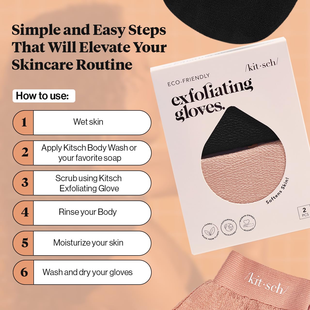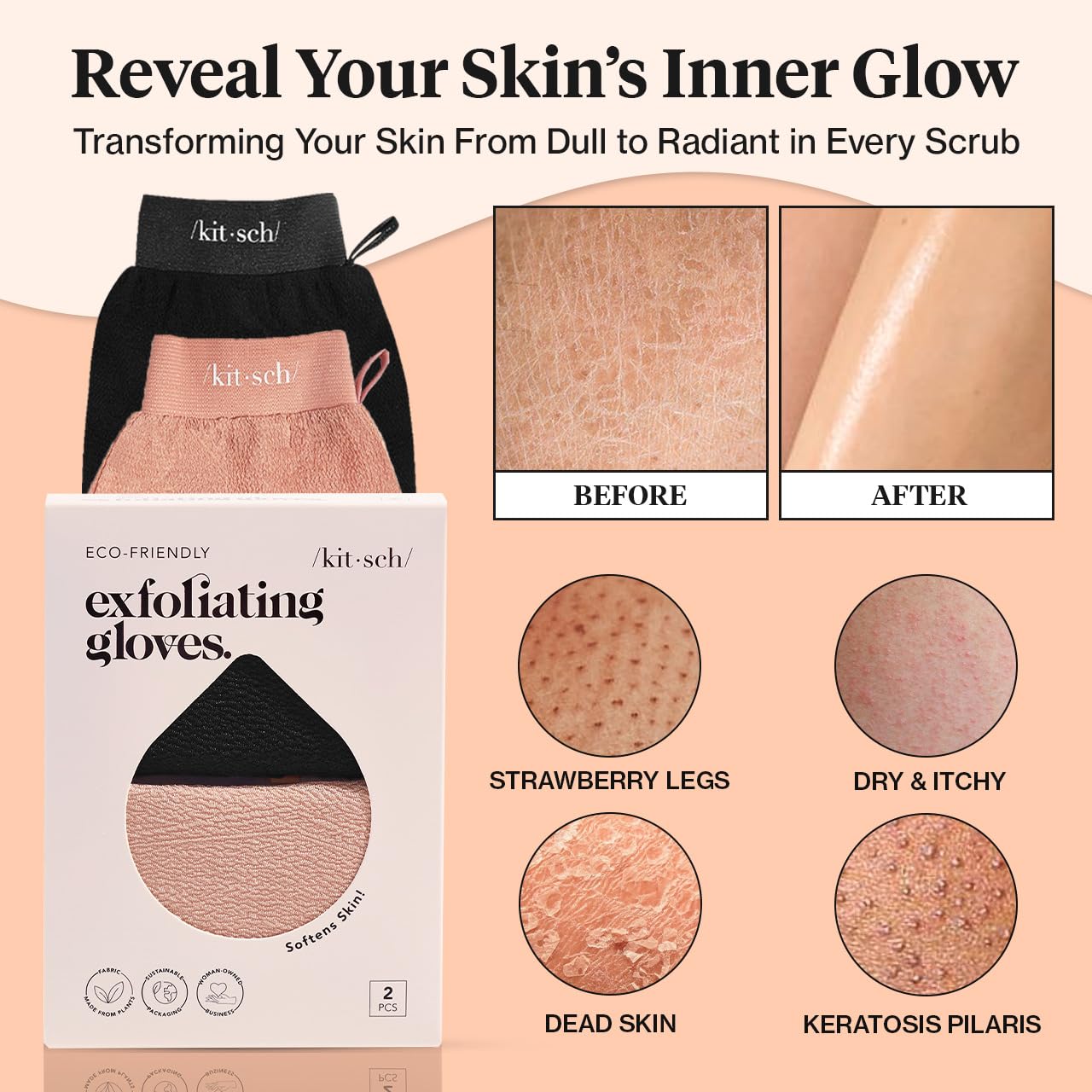 GLOWING SKIN WITH EVERY USE – DEEP EXFOLIATION AT HOME - Exfoliate your way to glowing skin with the Kitsch exfoliating glove! Designed to gently remove dead skin, this skin exfoliating glove boosts circulation and helps stimulate skin cell renewal. Unlike regular mitts, this deep exfoliating glove delivers spa-quality results right at home.