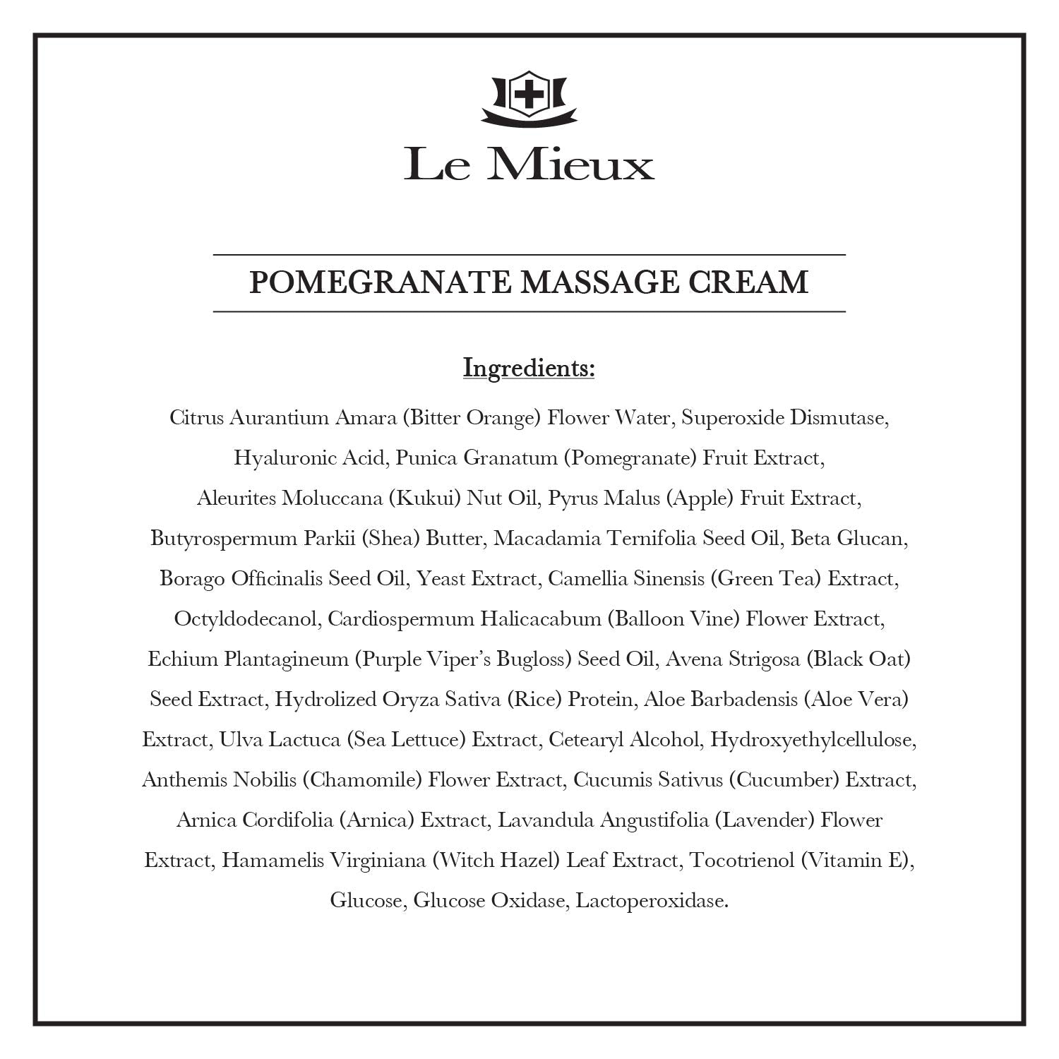 Le Mieux Pomegranate Massage Cream - Aromatic Moisturizing Neck & Face Massage Cream with Algae, Hyaluronic Acid & Botanical Oils, No Parabens or Sulfates (2 oz / 60 ml)