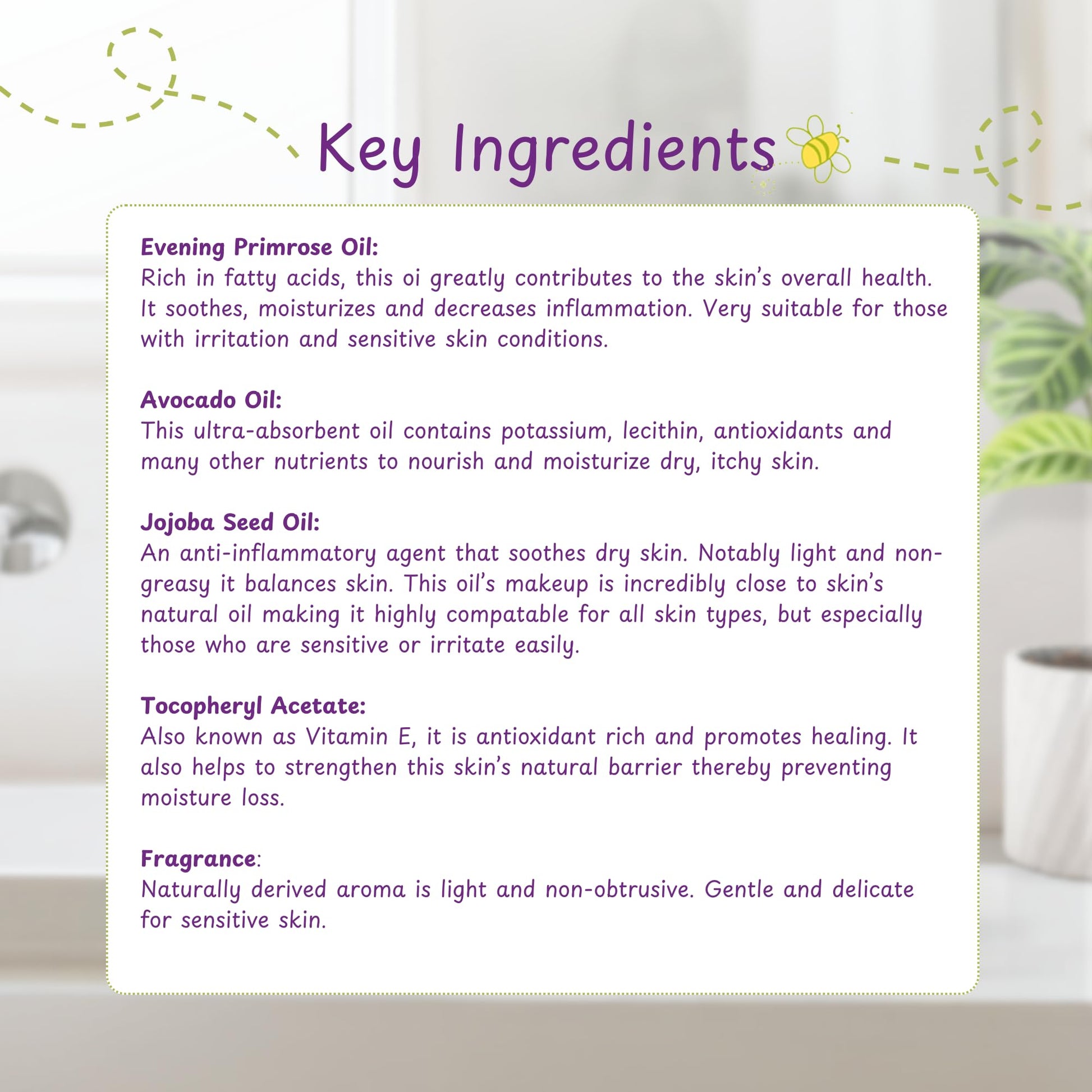 • AVOCADO OIL: This ultra‐absorbent oil contains potassium, lecithin, antioxidants and many other nutrients to nourish and moisturize dry, itchy skin.