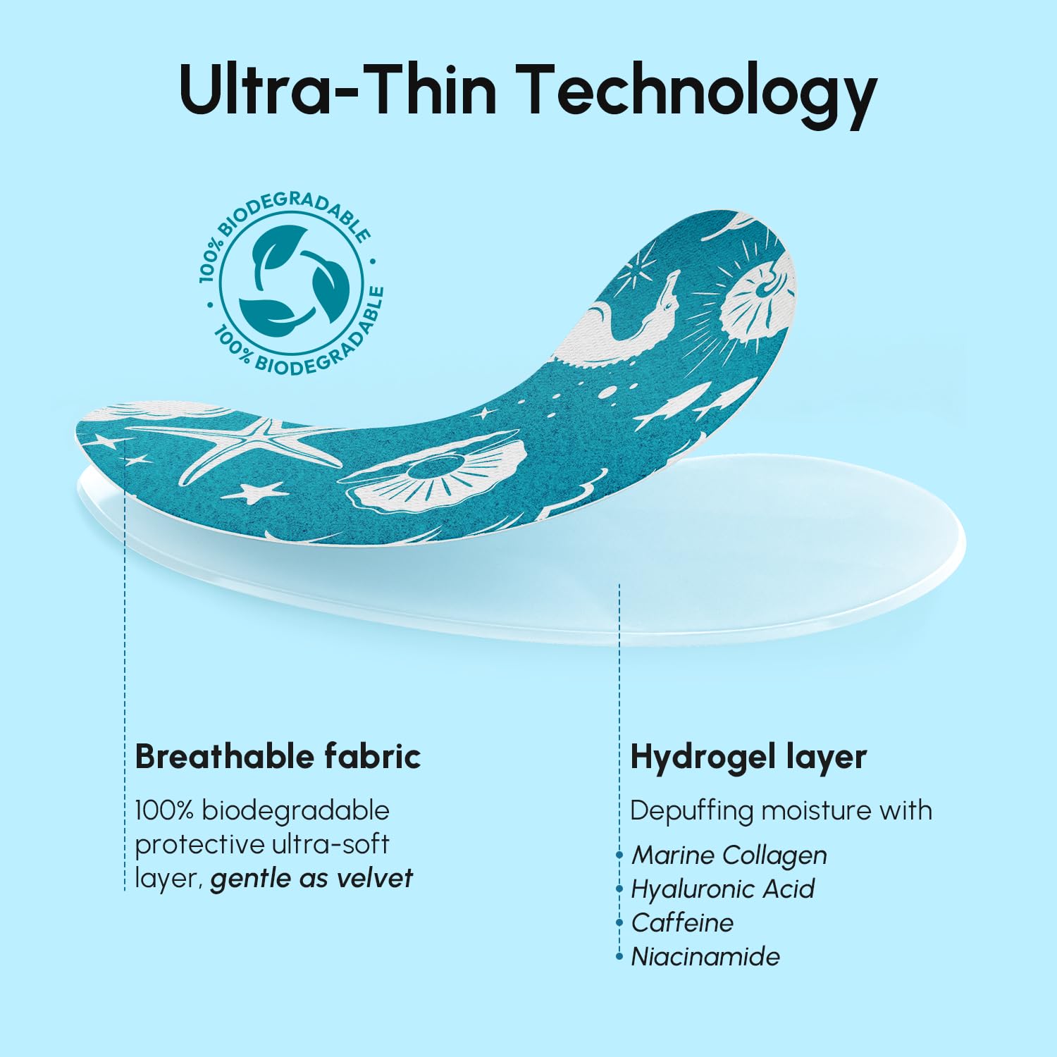 MAREE Hydrating Under Eye Patches for Puffy Eyes and Dark Circles – Marine Collagen & Caffeine Eye Patches – Brightening Eye Patche with Niacinamide – Depuffing Eye Mask for Dark Circles and Puffiness