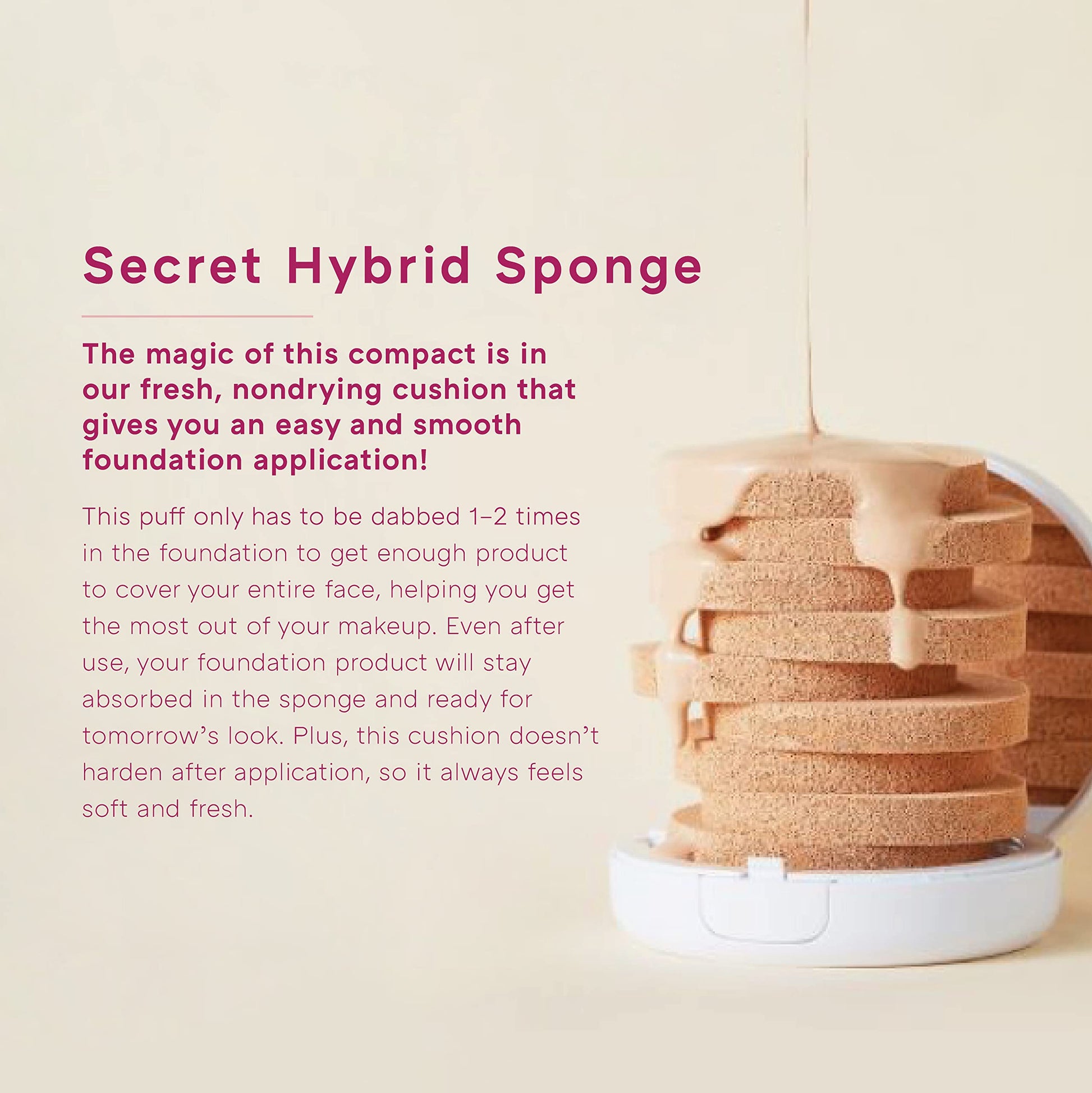 • Magic Sponge Hybrid: This innovative sponge applicator makes it easy to touch up on the go, absorbs and retains makeup to reduce waste, and won't harden after use.