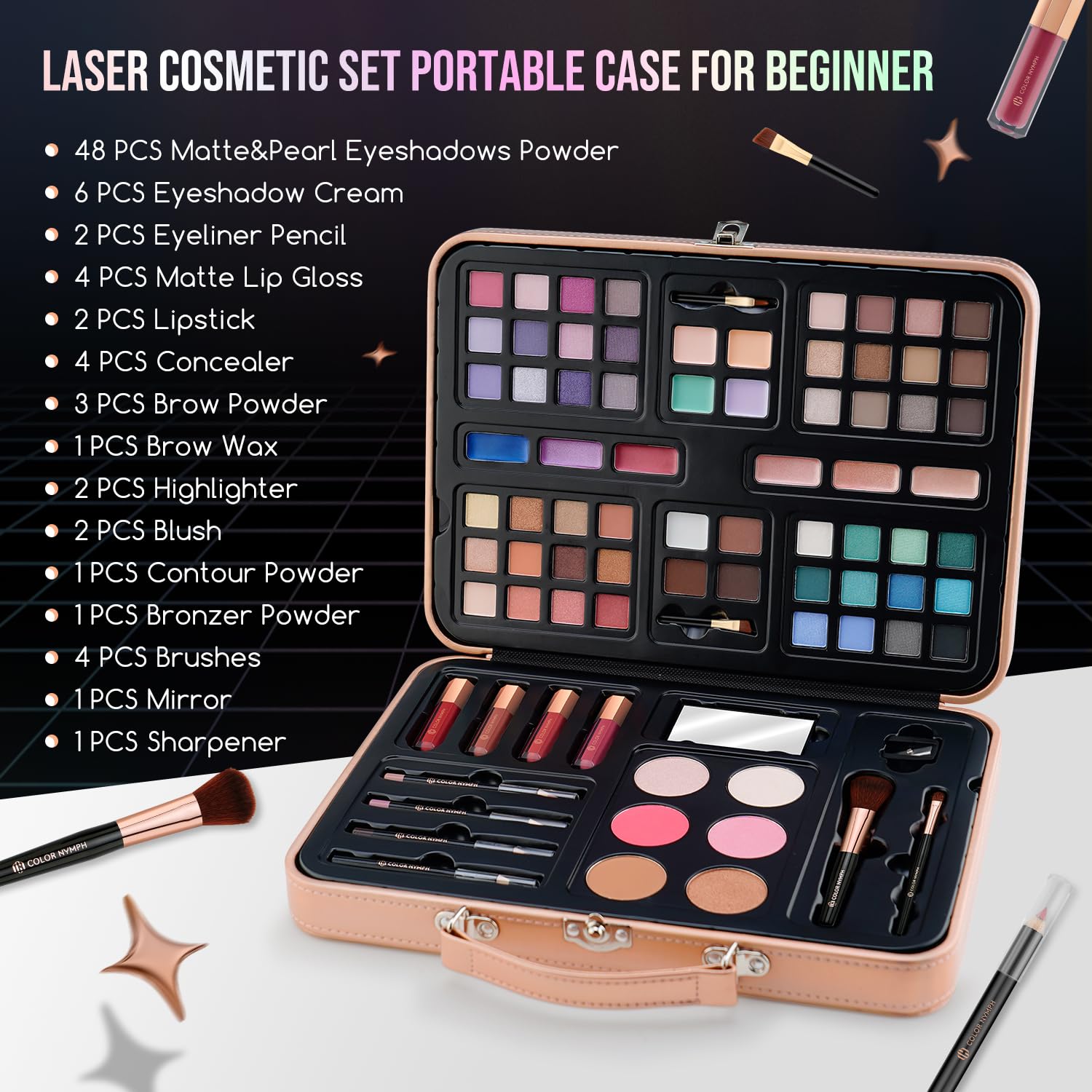 Multipurpose Makeup Kits for Teens Girls, Travel Makeup Set Non-toxic, Makeup Gift for Women Teen, Eyeshadows Blushes Bronzer Highlighter Concealer Lipgloss Eyeliner Lipliner Brushes Gold Case
