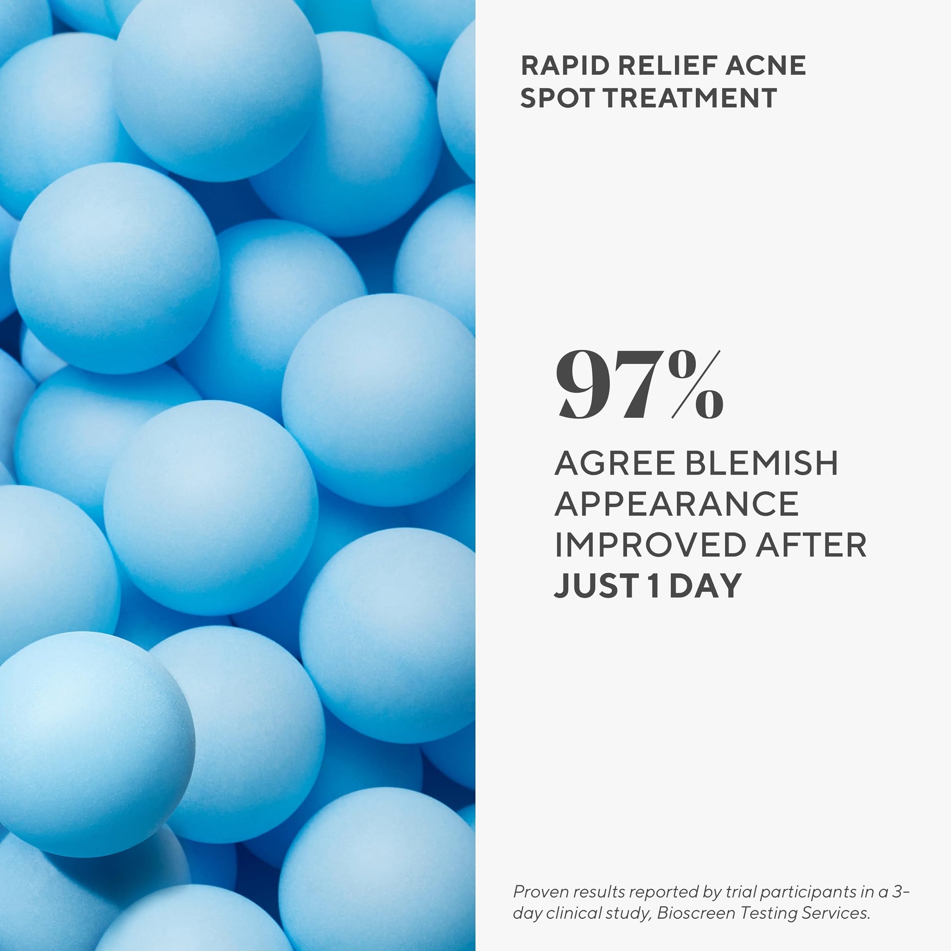 RAPID BLEMISH CONTROL: Murad's Rapid Relief Acne Spot Treatment fights blemishes, breakouts, and pimples at the source with 2% Salicylic Acid. This is the highest concentration of acne fighting solution in the Murad Acne Control Collection that led 97% of study participants to agree that blemish appearance improved after just 1 day in a Murad sponsored study.