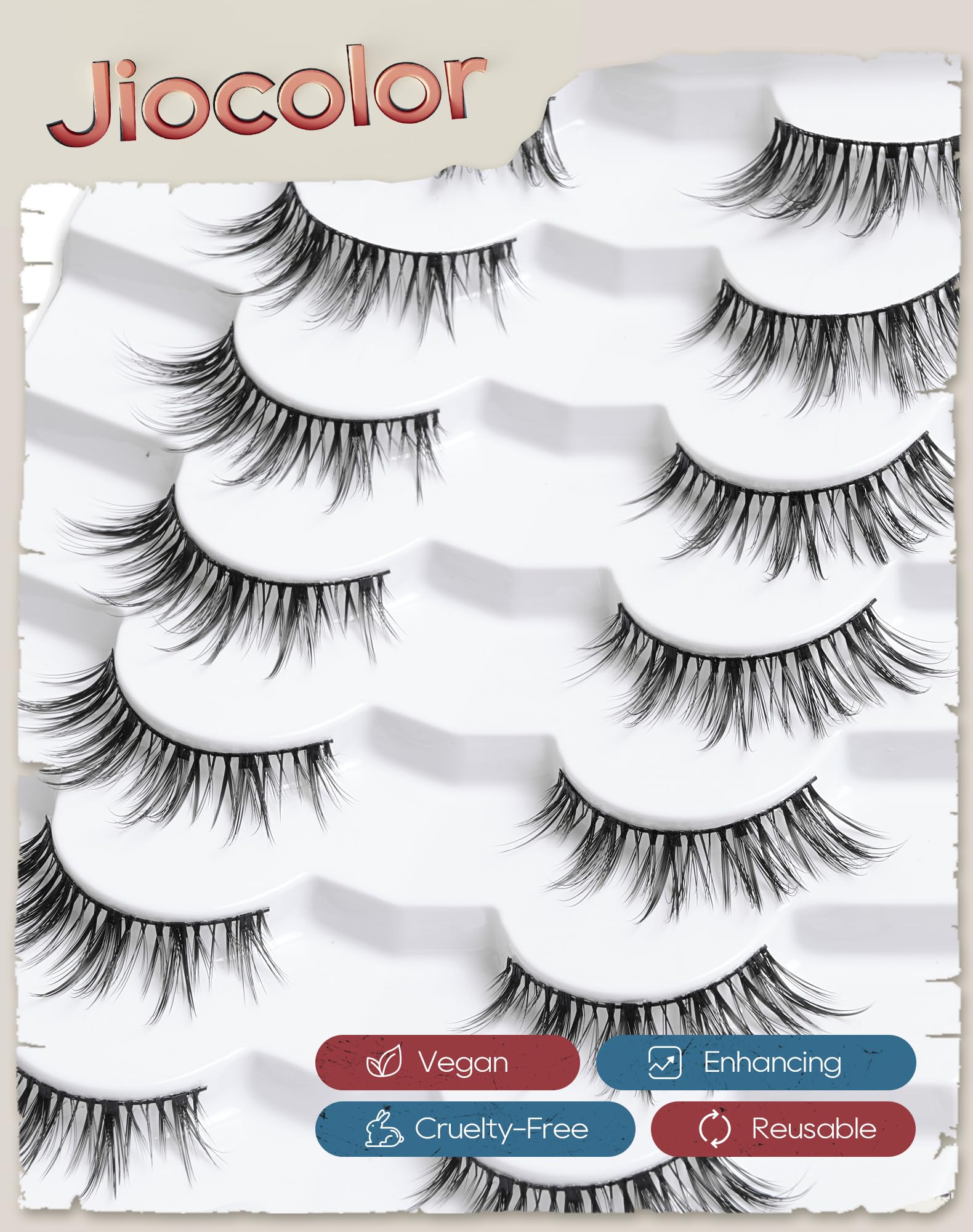 Ultra-thin lash band:Jiocolor eyelashes feature an ultra-thin lash band. With the super-fine band, the false lashes look thinner and more natural than other lashes on the market. It's time to try a new feeling lash.