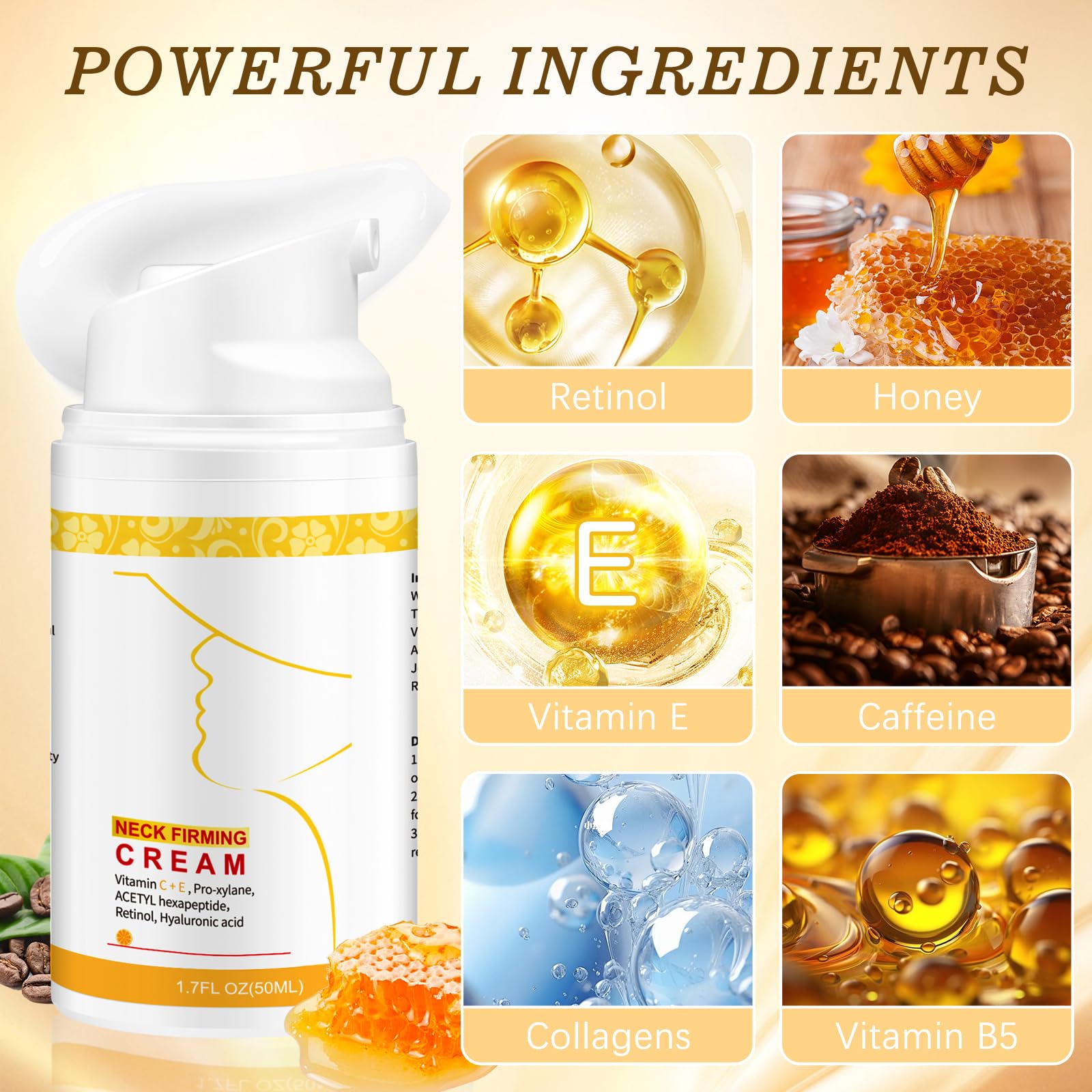 【Retinol Neck Firming Cream】: The neck firming cream contains high-performance botanical ingredients, improves neck lift and retains skin moisture. Neck cream visibly improve the appearance of the Neck & Décolleté skin.