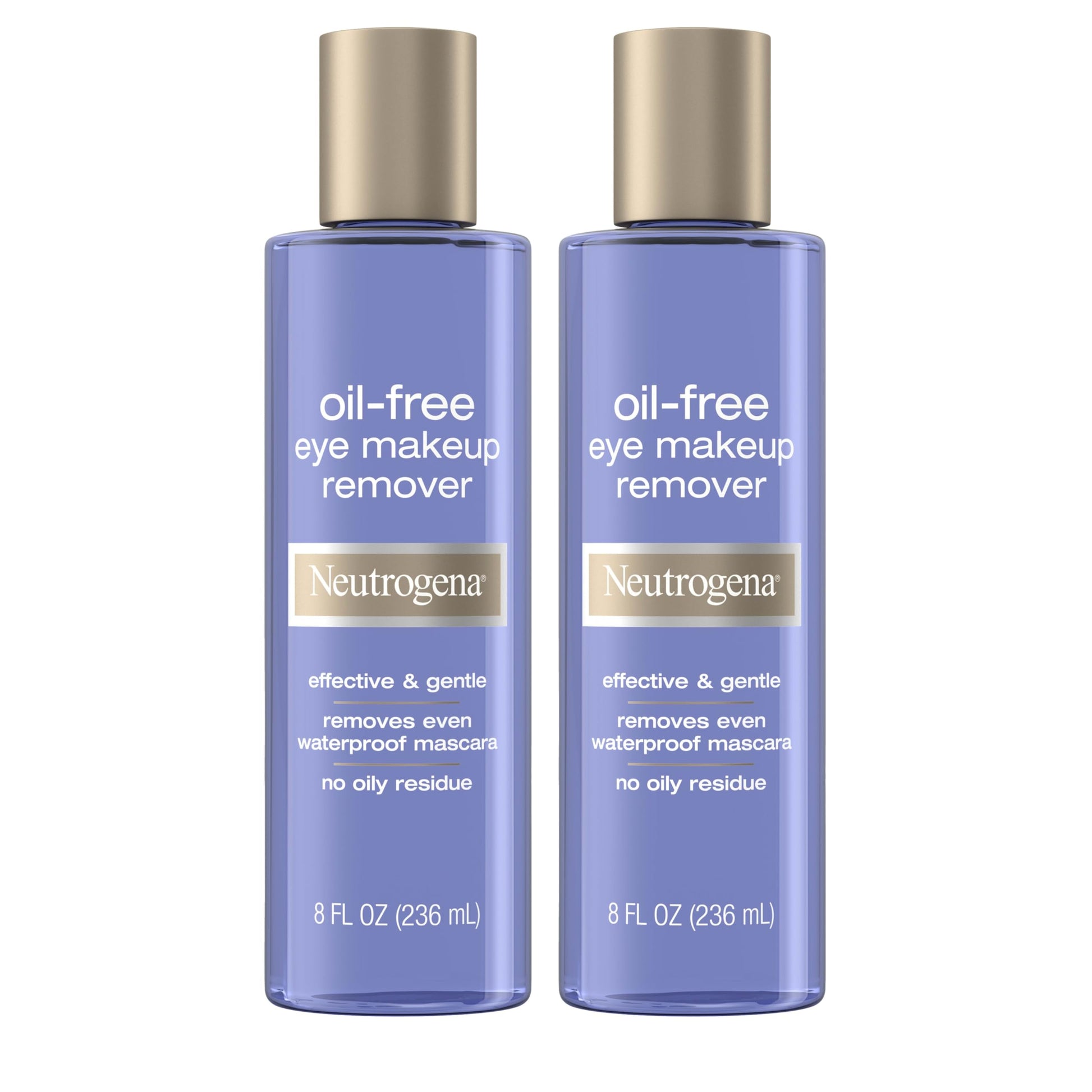 Twin pack of 8-fluid ounce bottles of Neutrogena Oil-Free Eye Makeup Remover & Cleanser, provides effortless removal of waterproof makeup while refreshing and soothing the skin