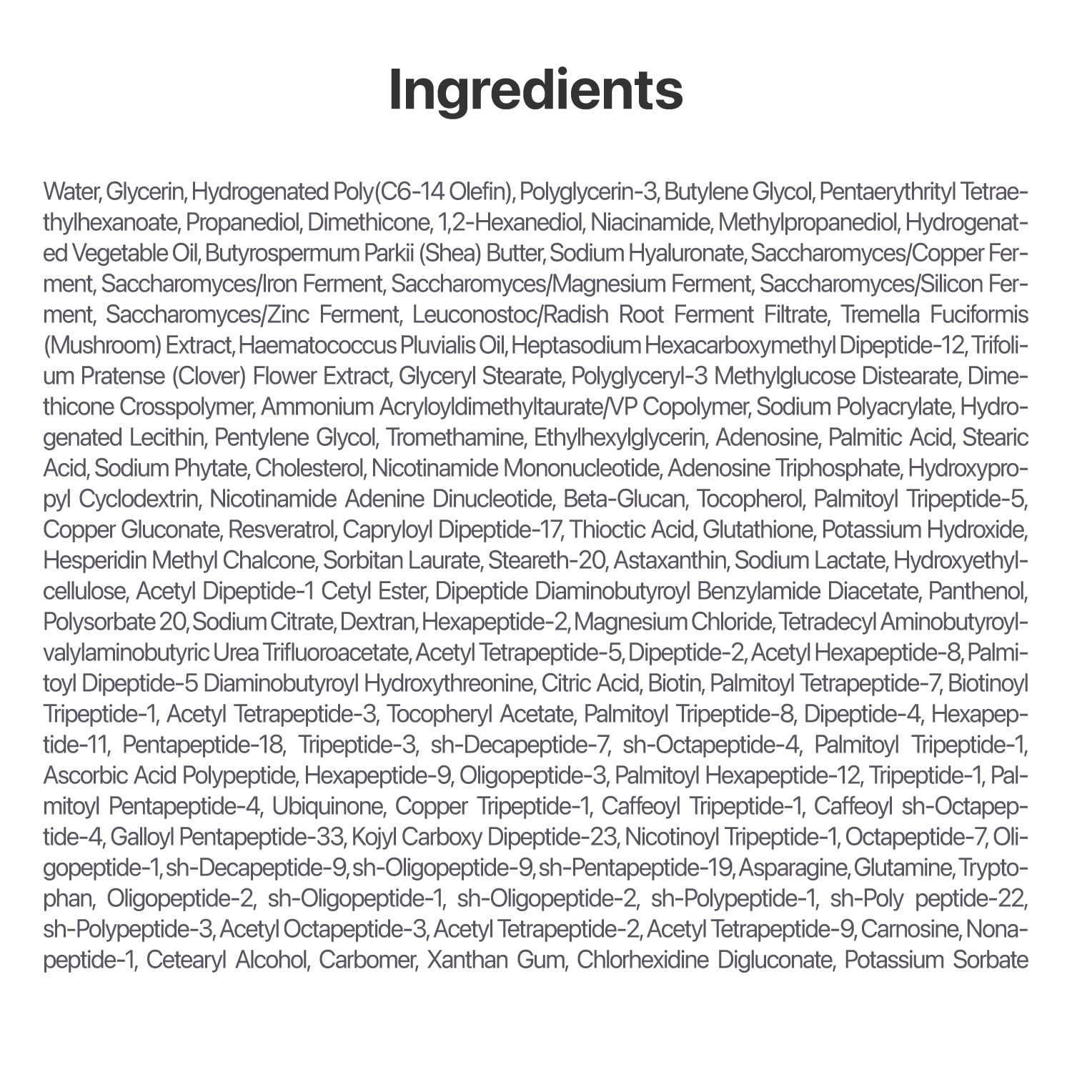[KEY INGREDIENTS] Formulated with NAD+, an anti-aging ingredient that enhances cell turnover, stimulates collagen production, and promotes skin repair along with 50 types of peptides to plump and firm the skin.