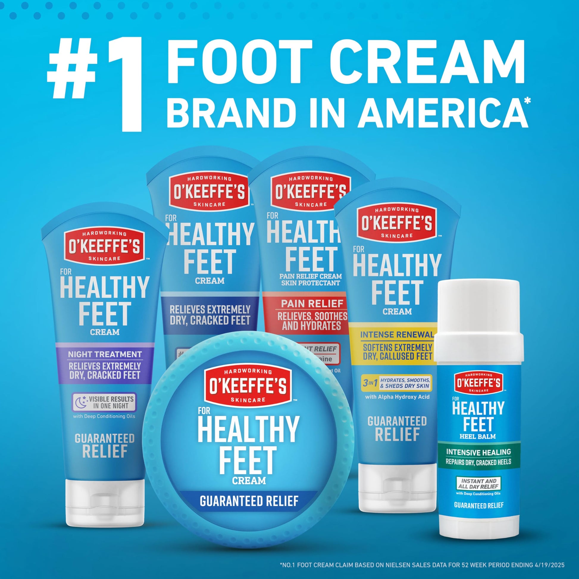 O'Keeffe's for Healthy Feet Foot Cream is a concentrated moisturizer that heals; relieves; and repairs extremely dry; cracked feet. Guaranteed relief or your money back. The #1 Foot Cream Brand in America* offers dry cracked feet treatment and dry cracked heel treatment.