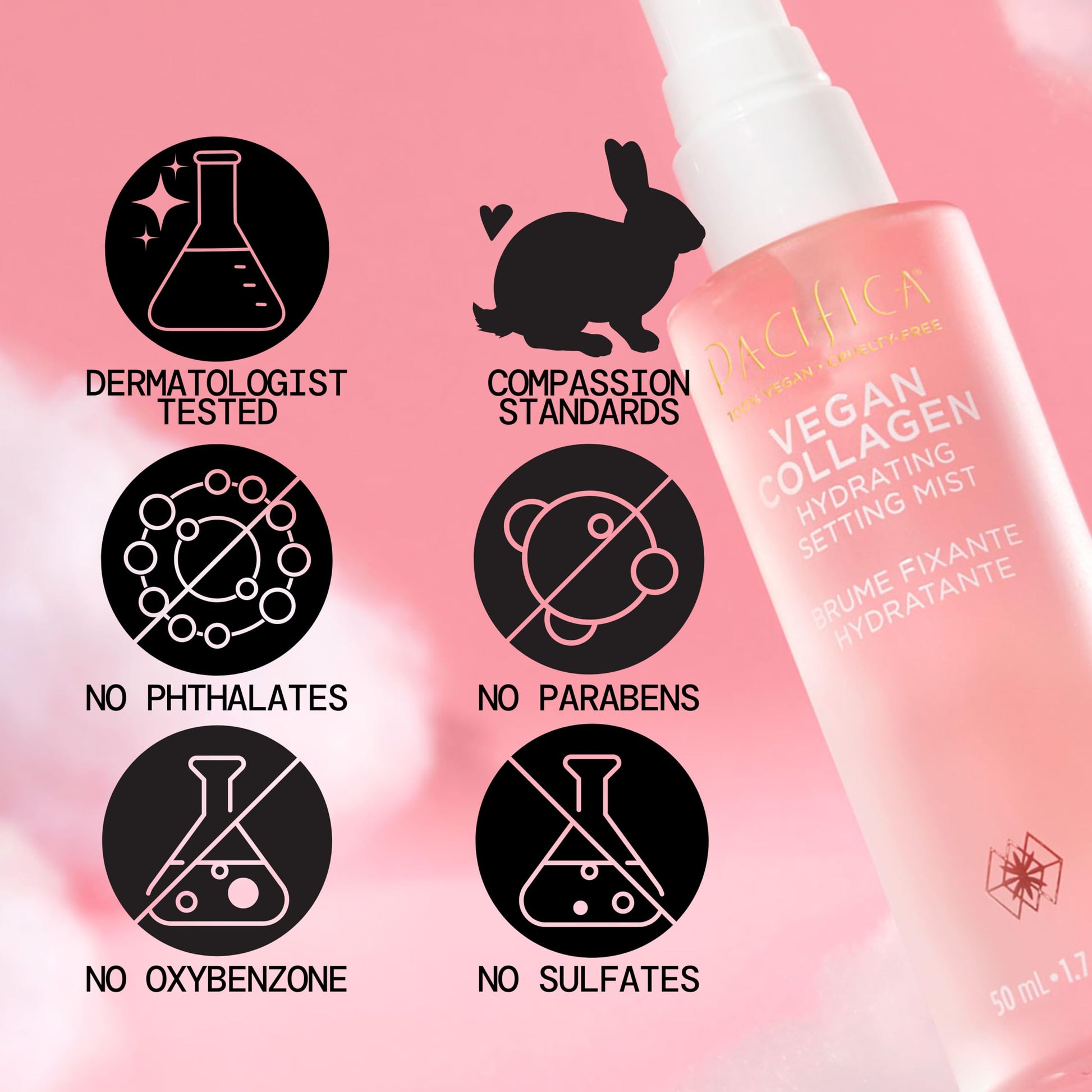 Pacifica Beauty Vegan Collagen Hydrating Setting Mist – Hydrating Illuminating Face Primer for Dewy Skin, w/Vegan Collagen & Squalane for Radiant Glow, Soft-Focus Pore Blurring Makeup Base