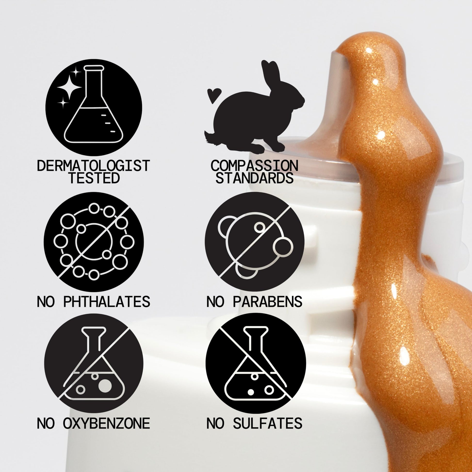 - Customizable & Versatile: These bronzing drops are totally adjustable to your desired level of glow. Use 1-2 drops for a hint of warmth or layer on more for a more pronounced bronze. You can apply it directly as a liquid bronzer on the high points of your face (cheeks, forehead, nose, and chin) or even all over for a no-sun tan effect. Mix it with lotion to add an all-over body glow on shoulders and décolletage. It’s transfer-resistant once it sets, so your radiant glow stays put on your skin, not on your clothes.