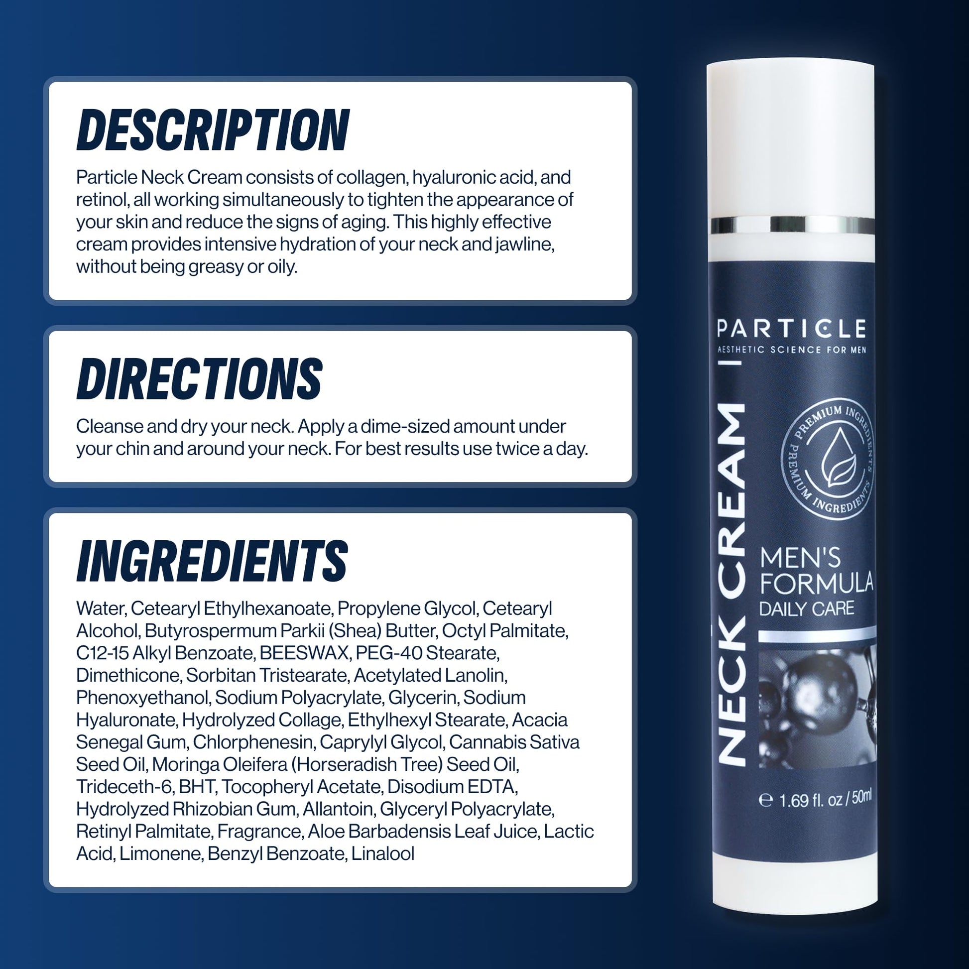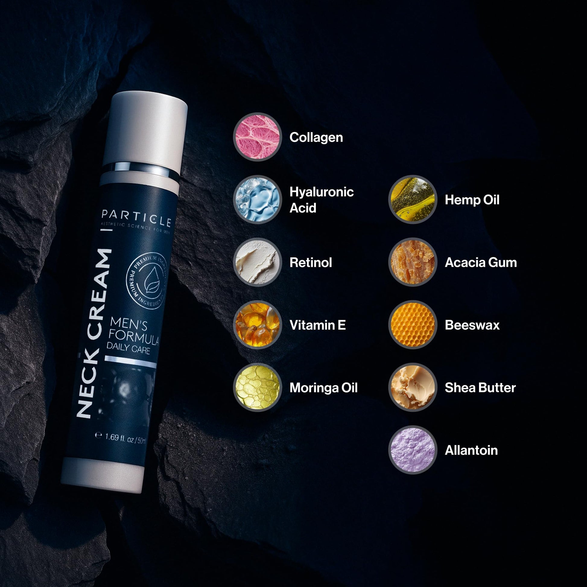Particle Neck Cream, Daily Skin Care for Men with Collagen, Hyaluronic Acid, Retinol, Vitamin E, Moringa Oil & Shea Butter for Health Skin Support, Hydrating Men’s Body Lotion, 1.7 fl oz