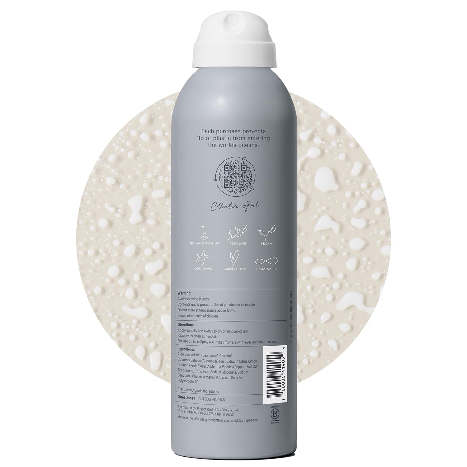 Natural After-Sun Relief – Enriched with organic aloe vera, peppermint, and cucumber, this non-aerosol mist soothes and hydrates sun-exposed skin, providing instant cooling relief without the sticky residue of traditional aloe gels