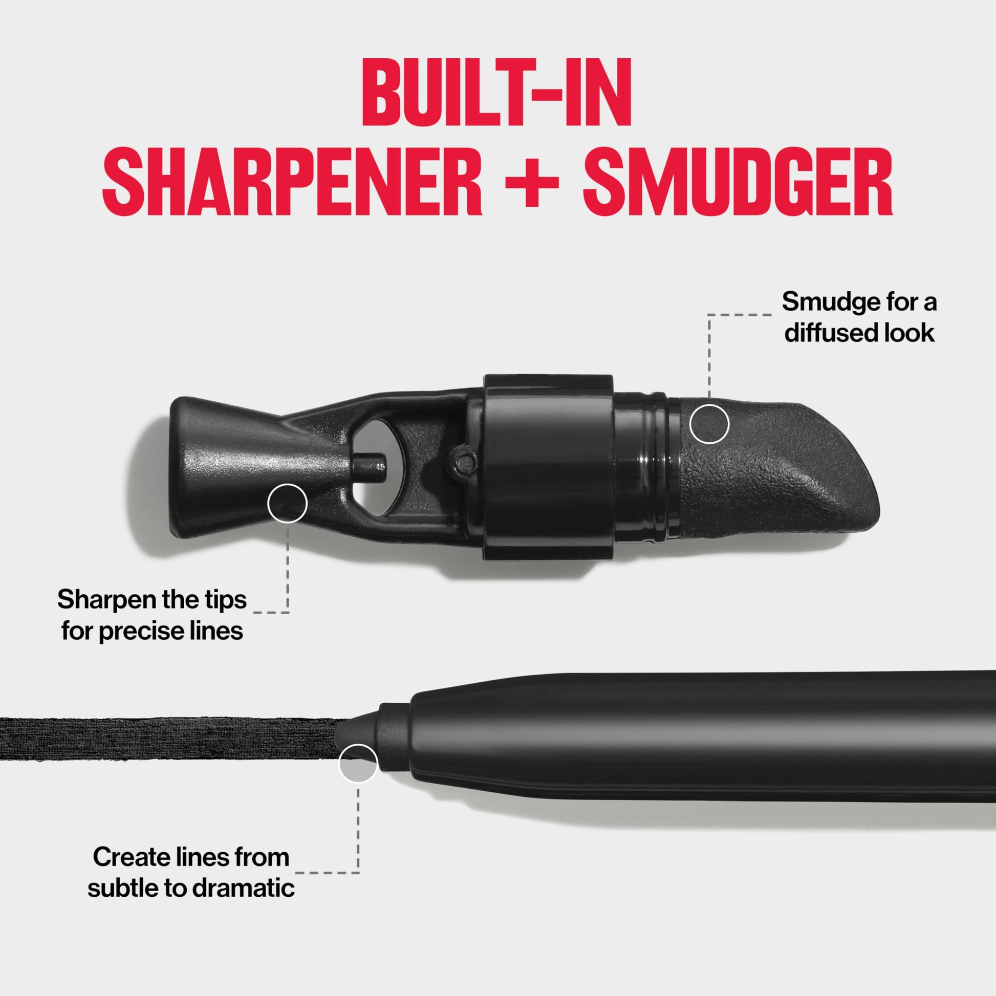 America’s #1 Longwear Eyeliner.* Revlon ColorStay Eyeliner Pencil delivers rich, lasting color that looks freshly applied all day long, and glides on smoothly in totally wearable, everyday shades. Whether you want to go subtle or dramatic, this eyeliner pencil creates the look you want and stays on strong. Formulated with ColorStay Adapti-Flex Color Lock Technology™. Waterproof, smudge-proof, fade-proof, and transfer-proof. Up to 24HR wear. Plus, it has a built-in sharpener and smudger. *Revlon Consumer Products Corporation’s calculation based in part on data reported by Circana, LLC, through its OmniMarket Service of Total US Multi-Outlet for Makeup Category, Eyeliner Subcategory for the 52-week period ending 11-24-2024 using Revlon’s custom definitions.