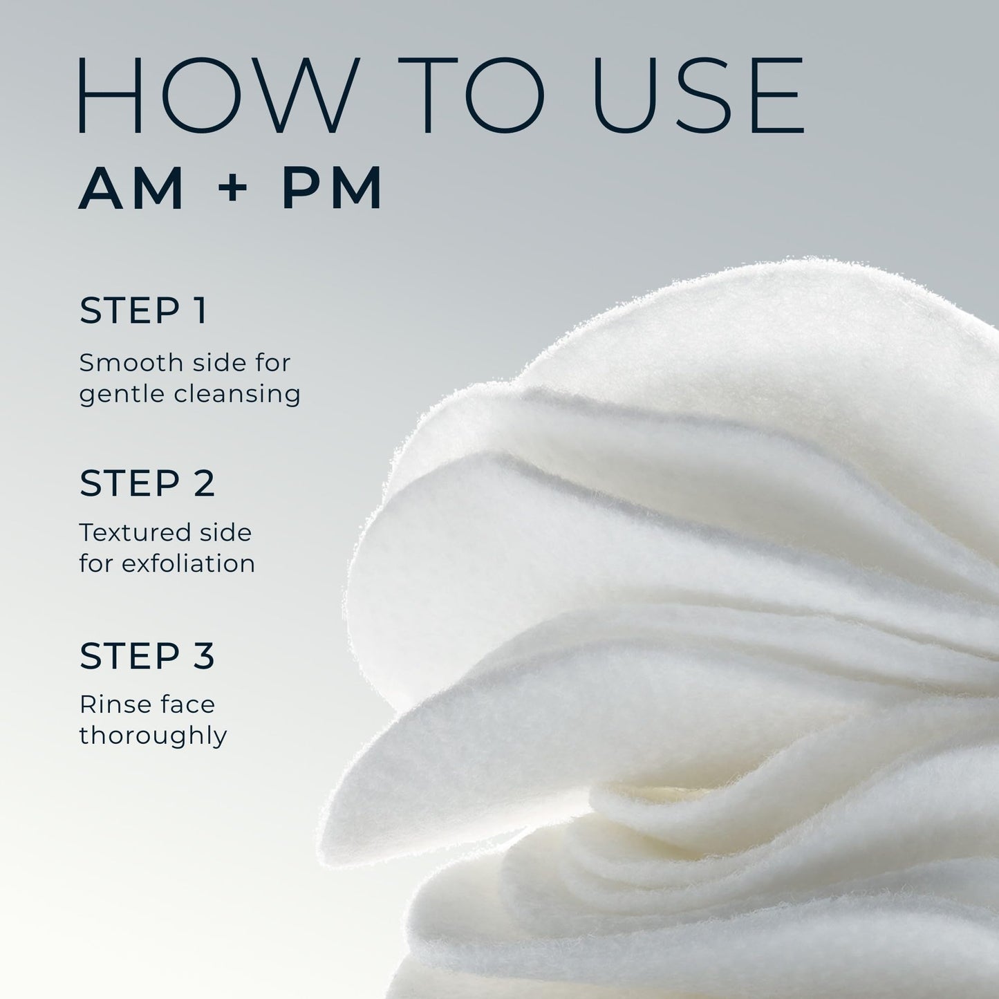 ONE EASY STEP: These self-foaming exfoliating pads contain skin-conditioning glycerin. Textured on one side to gently exfoliate dirt, oil & dulling impurities. Smooth on the other to gently cleanse & remove makeup around the eye area.