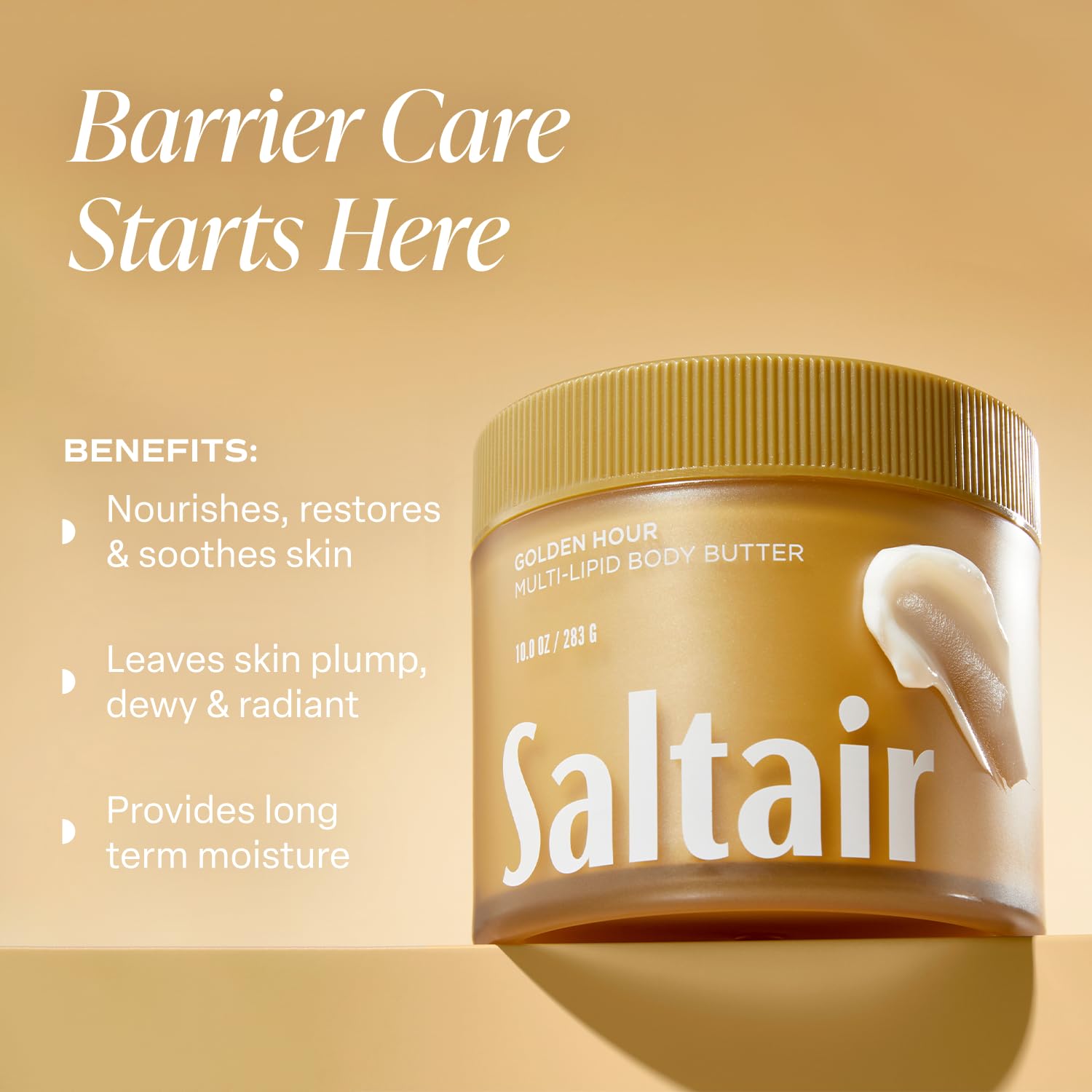 Saltair Multi-Lipid Body Butter - Rich, Nourishing Golden Hour Hydrating Body Cream with Ceramide Complex, Coconut Oil, Shea Butter, and Sea Buckthorn. Deep Moisturizing Dry Skin Care. 10oz Jar