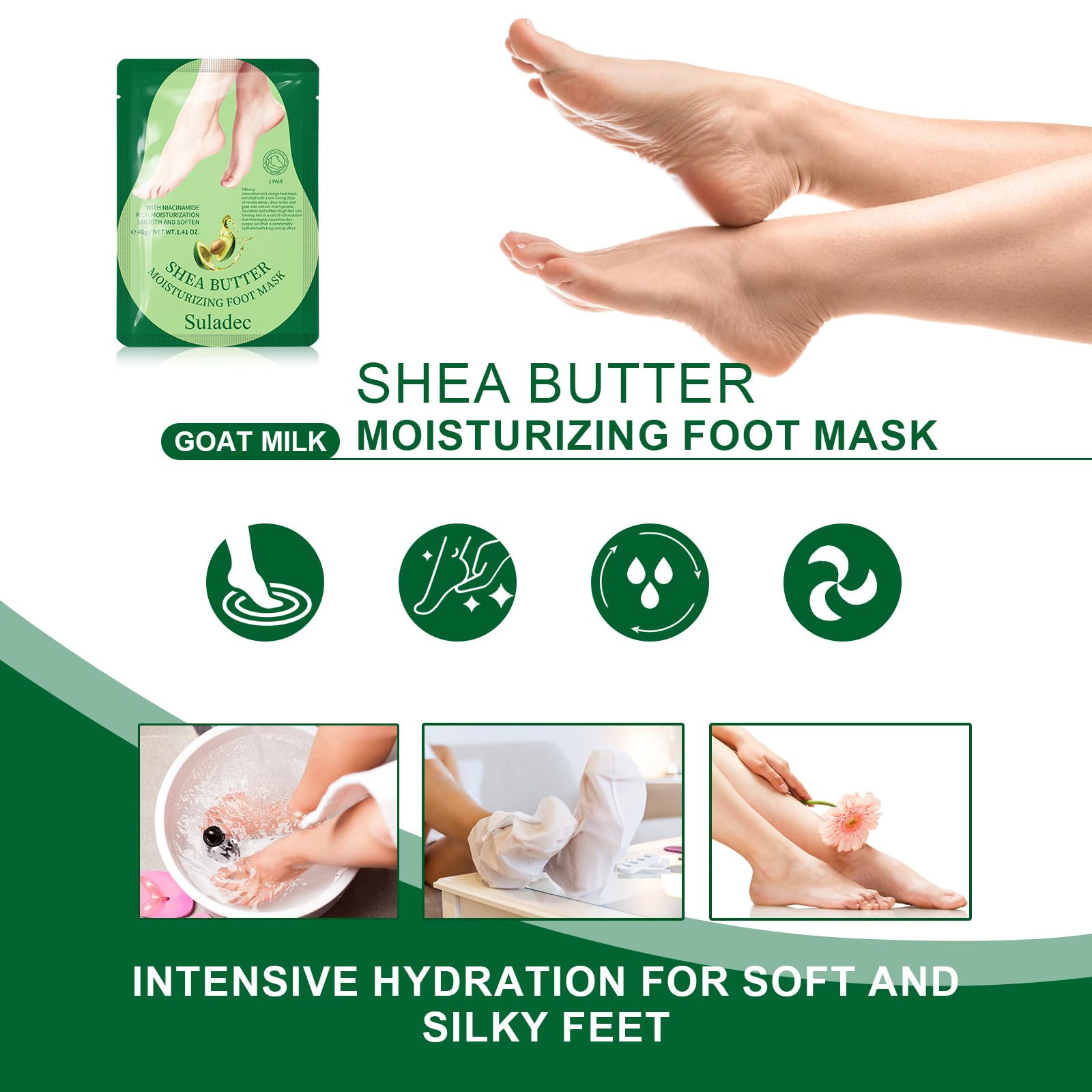 SULADEC Moisturizing Foot Mask with Shea Butter and Goat Milk, Hydrating Foot Masks for Dry Cracked Feet, Dry Skin Moisturizer for Soft and Smooth Touch Feet - Men Women - 5 Pairs